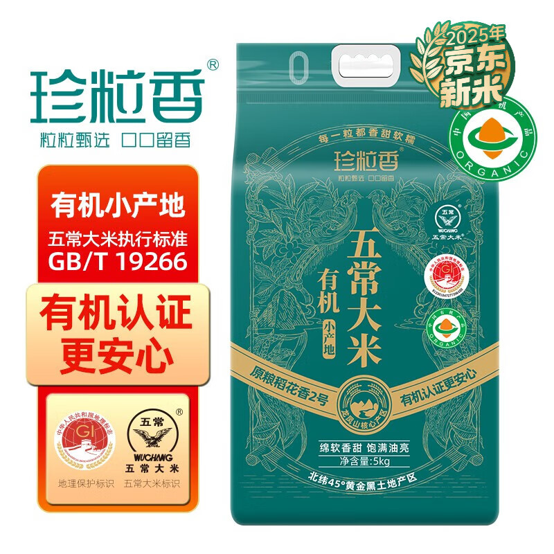 限定五常有机龙凤山小产区;原生态种植,不施化肥,不打农药;有机认证安全更放心