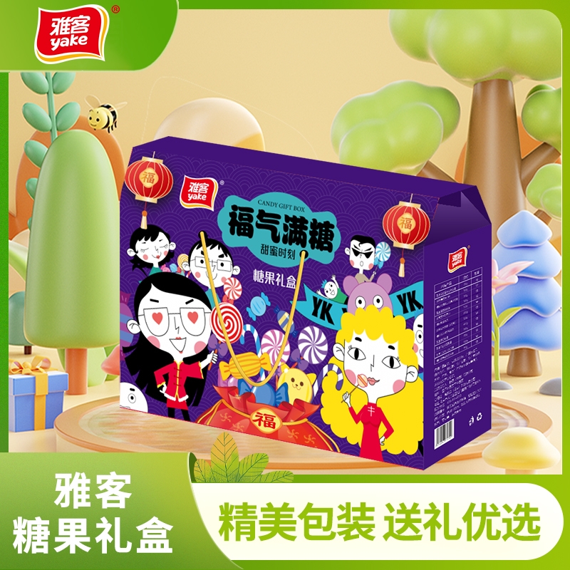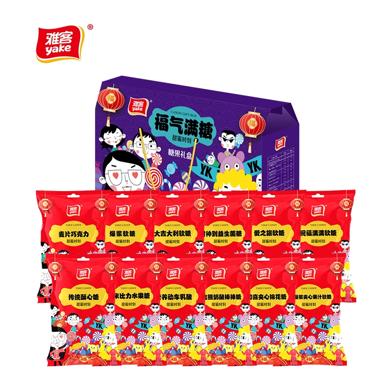 配置清单:雅客麦片巧克力120g 雅客爆浆软糖120g 雅客大吉大利软糖120g 雅客财神到益生菌糖150g 雅客爱之旅软糖120g 雅客祝福满满软糖108g 雅客传统酥心糖150g 雅客卡米比力水果糖200g 雅客营养动车乳酸冻300g 雅客卜吉熊奶酪棒棒糖130g 雅客花初喜夹心棉花糖120g 雅客V9爆浆夹心果汁软糖120g