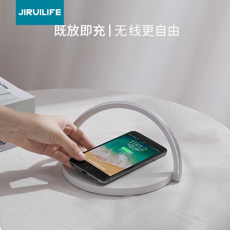 手机即放即充,无线更自由。;10W大功率,速充不伤机。;台灯3档开关,触摸切换。;手机支架功能,解放您的双手。