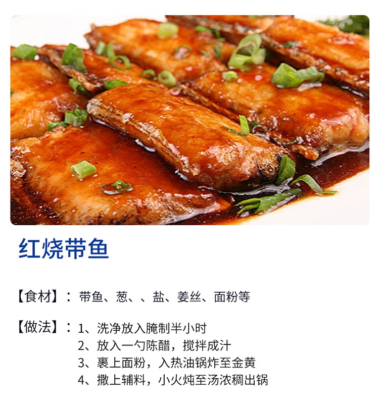 冷水带鱼个头小肉薄细腻;小眼睛 眼珠黑色;优质的鱼肉肉质紧密,鲜美细腻,肉嫩而富有弹性。