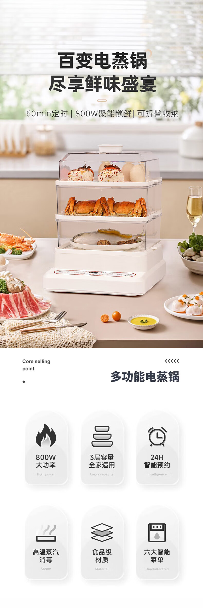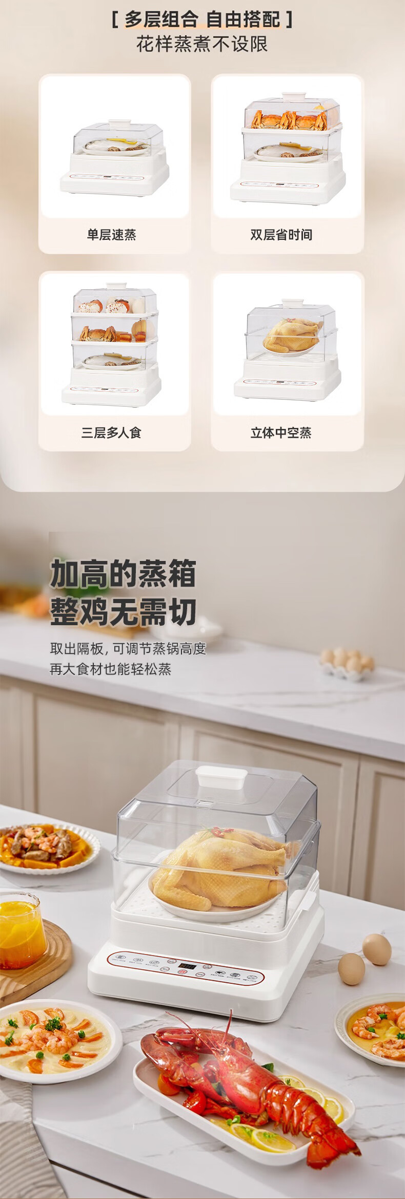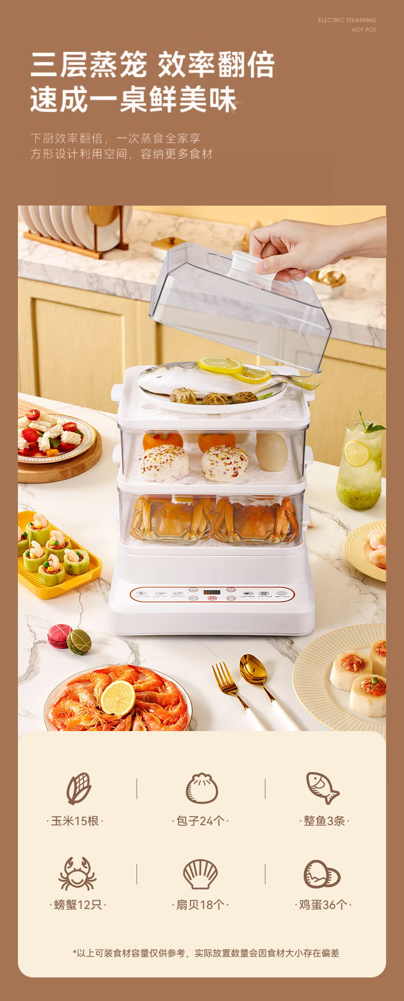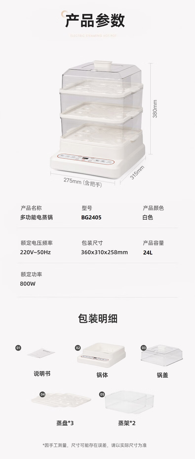 蓓菓 电蒸锅多功能多层家用蒸笼电蒸箱BG-2405