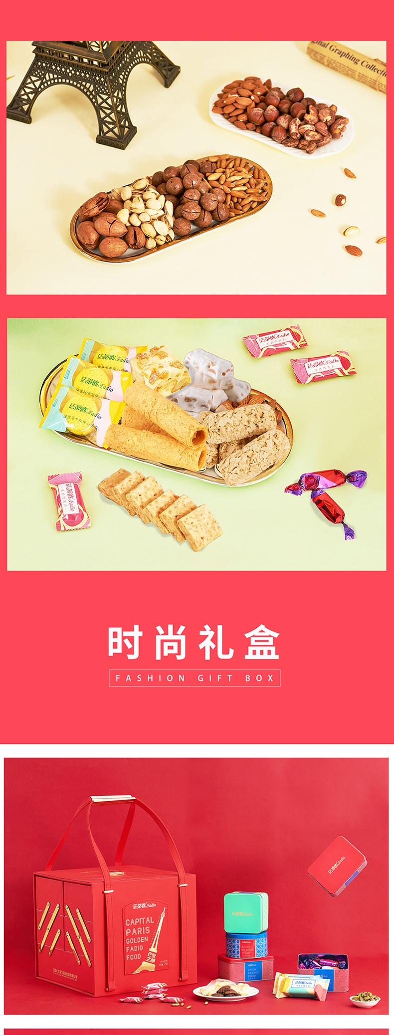春节坚果礼盒装年货节高端 商务馈赠;坚果+法式休食;让我们一起用这份满载心意的礼盒,开启一段浪漫的味觉