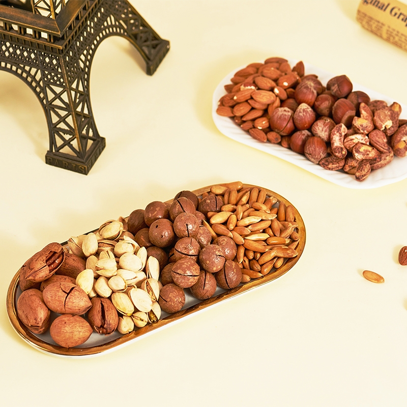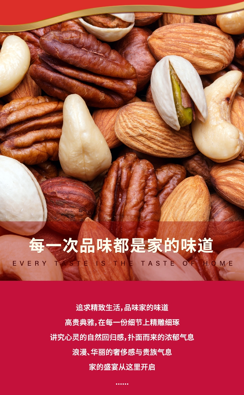 配置:开心果(塑料罐)240g紫皮腰果(塑料罐)240g巴旦木(塑料罐)200g开口榛子(塑料罐)240g夏威夷果(塑料罐)240g碧根果(塑料罐)240g东南亚黄蕉干(塑料罐)150g阿联酋椰枣(塑料罐)280g