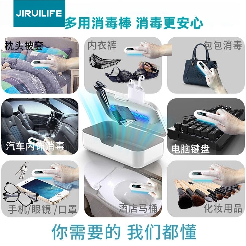 双波段双重杀菌;;一机两用灵活消毒;;智能体感安全防护;;可拆卸消毒管设计;;|支持内衣、数码产品、玩具等日常物品,拓展消杀范围