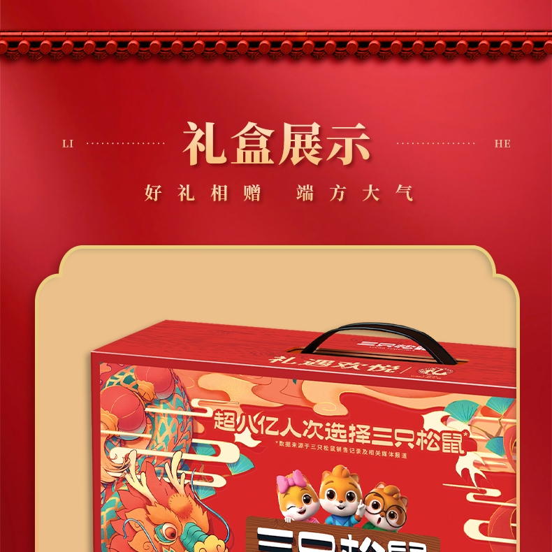 三只松鼠健康坚果的代表;好吃又健康,坚果界的领头羊;礼盒包装新颖又好看