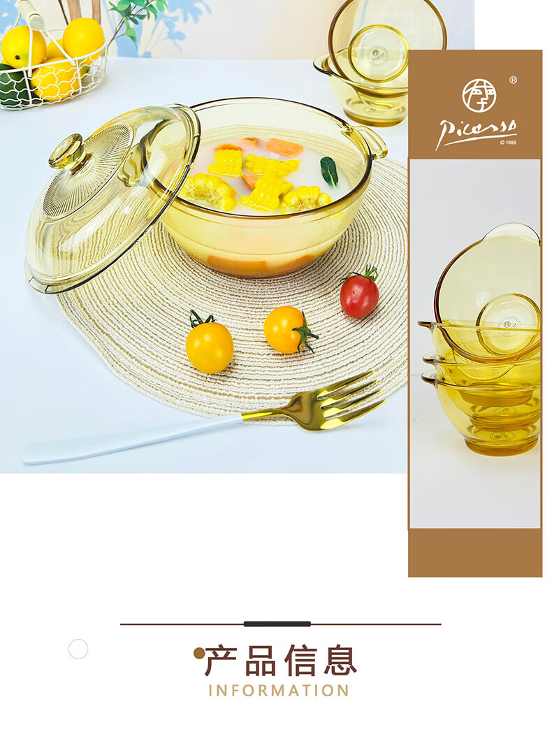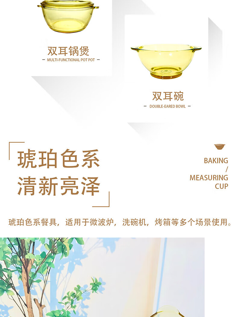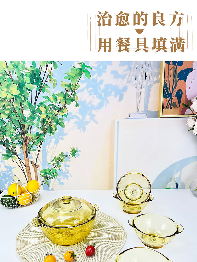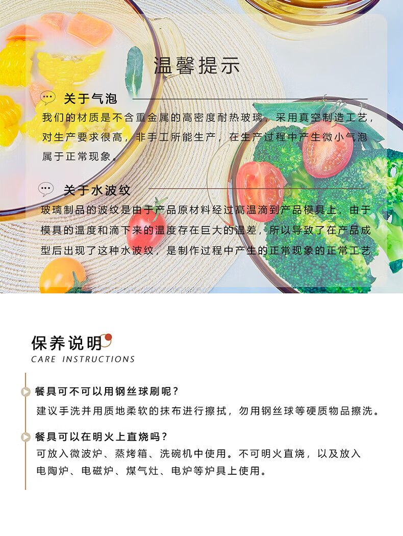 耐热玻璃,耐高温400℃,耐低温-20℃;适用范围:微波炉、烤箱、蒸锅、洗碗机、消毒柜均可使;简约欧式琥珀色餐盘,健康材质,易于清洗,套装配置,