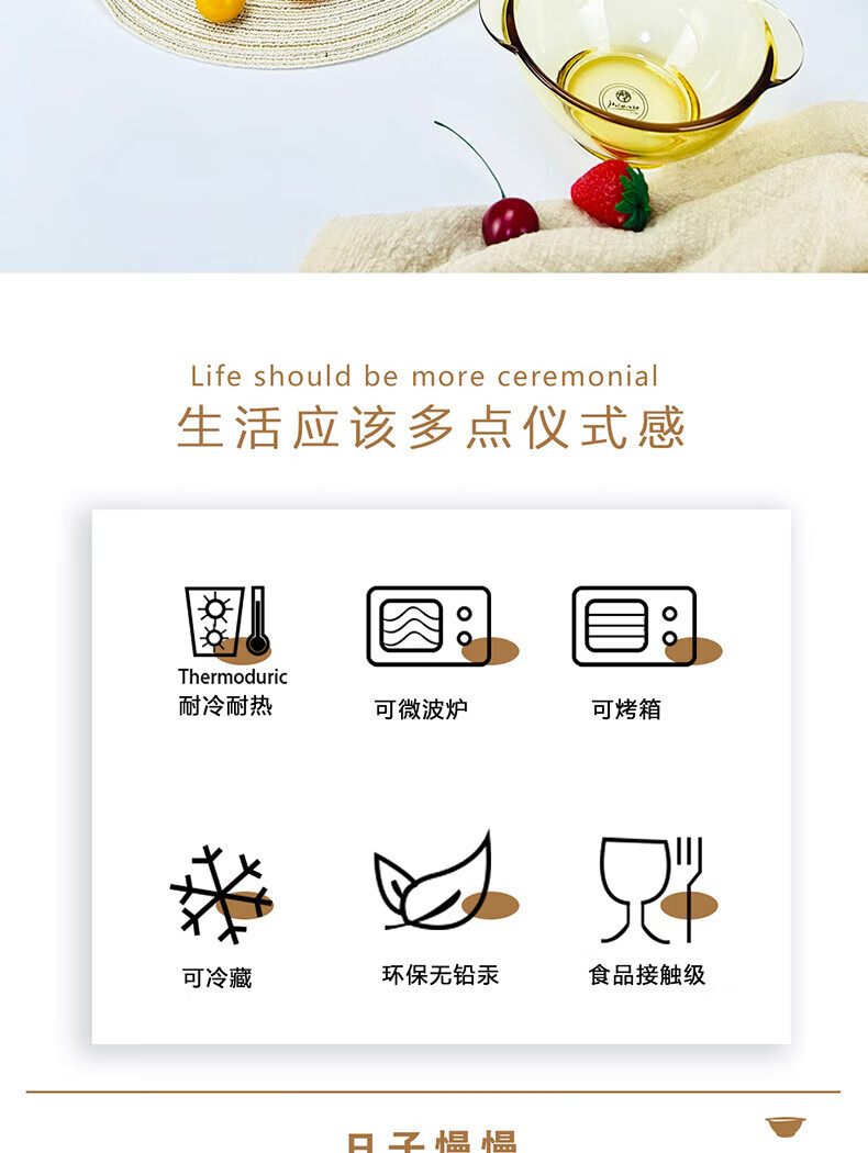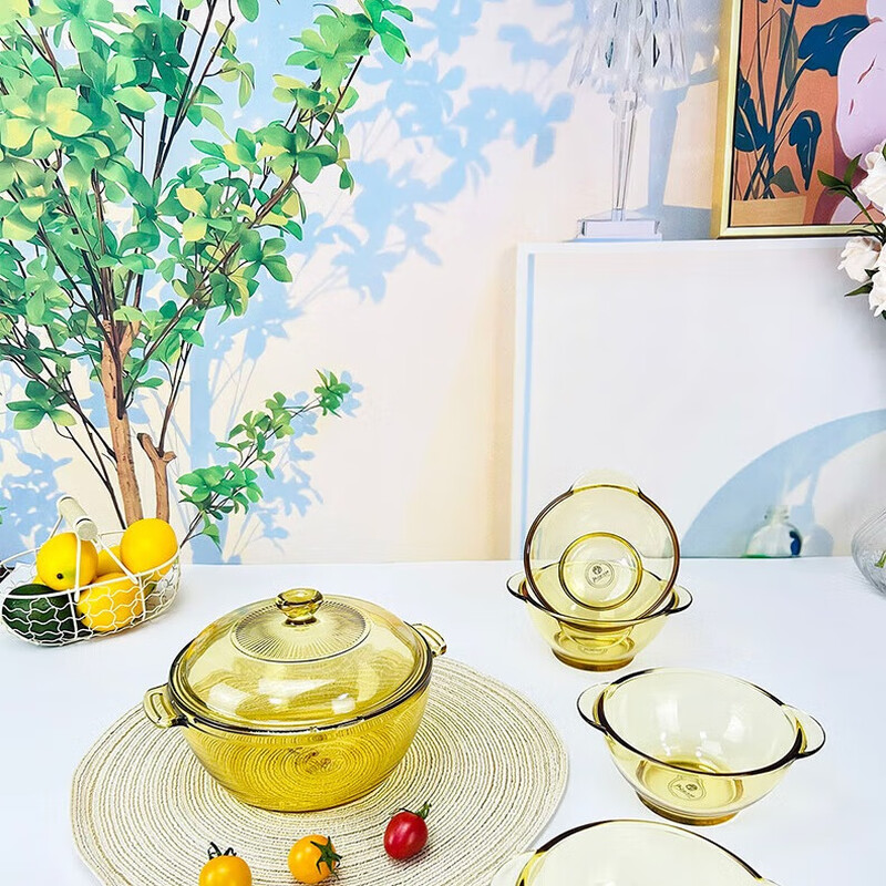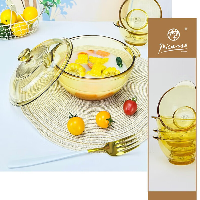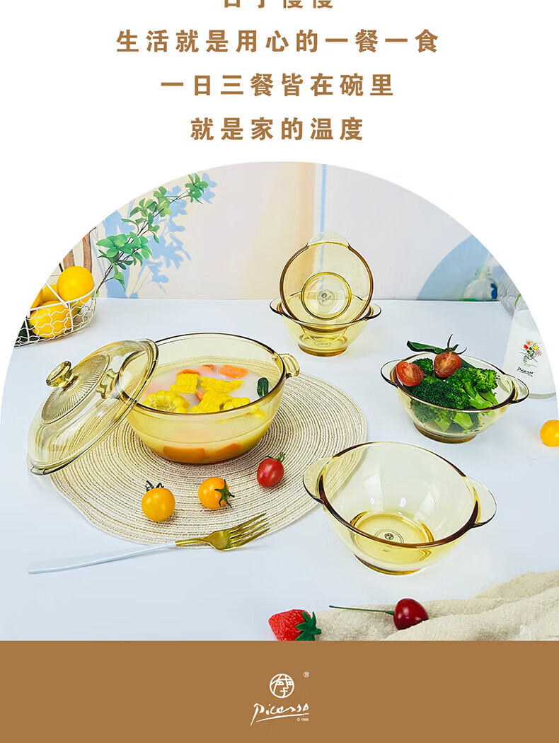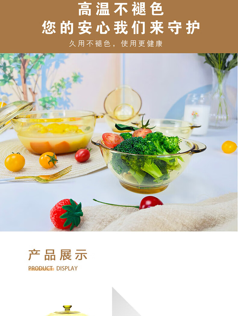 耐热玻璃,耐高温400℃,耐低温-20℃;适用范围:微波炉、烤箱、蒸锅、洗碗机、消毒柜均可使;简约欧式琥珀色餐盘,健康材质,易于清洗,套装配置,