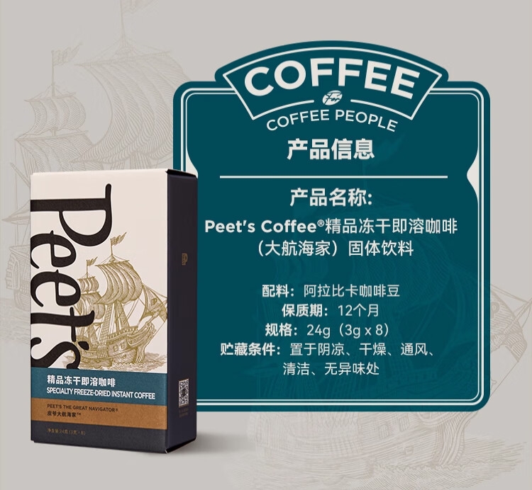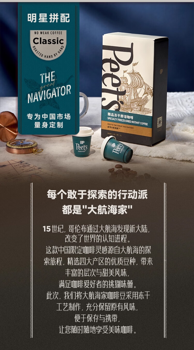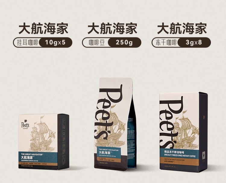 配置清单:大航海家咖啡豆250g/袋*1,大航海家冻干咖啡24g/盒*1,大航海家挂耳咖啡50g/盒*1,伯爵太妃糖105g/罐*1,门店同款胖胖杯12oz*1,定制礼盒+手拎袋*1