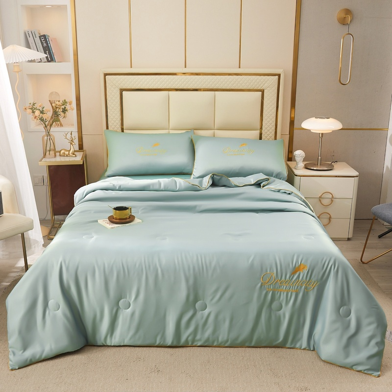 细腻水洗冰丝面料,手感舒适光泽感强,爽滑舒适,细腻;清凉丝滑裹着与生俱来的大气展示不俗的曼妙与爽滑;整张羽丝棉纤维填充,细腻舒适,中空结构散热快速,