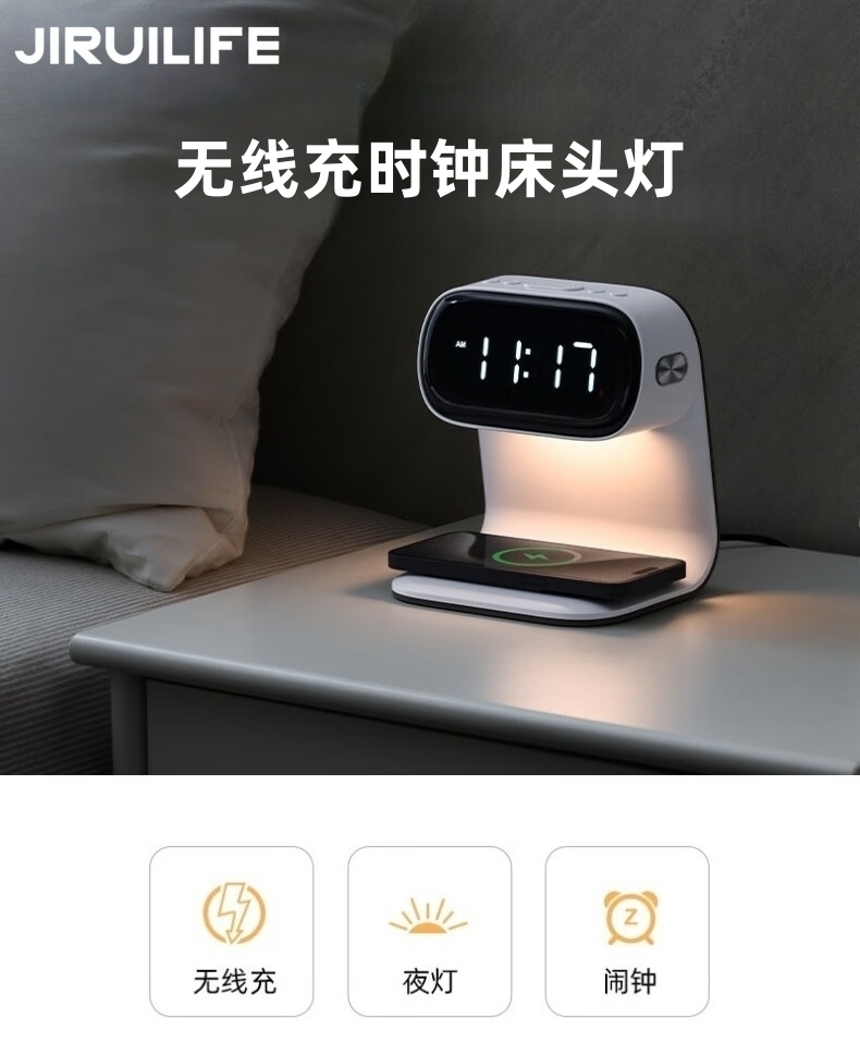 JIRUILIFE 无线充电时钟床头夜灯JR-L02