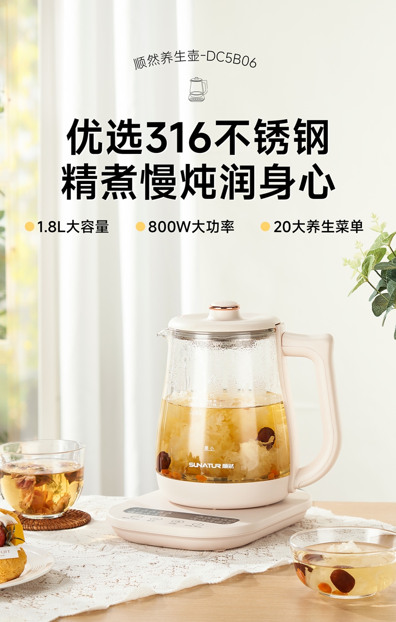 顺然 高硼硅玻璃养生壶1.8LDC5B06