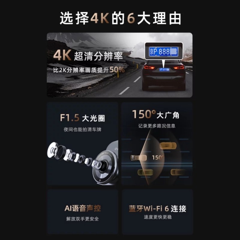 ADAS智能辅助驾驶提醒,前车起步提醒;AI智能语音声控,智能疲劳预警;鹰眼级黑光夜视,夜间画面如白昼