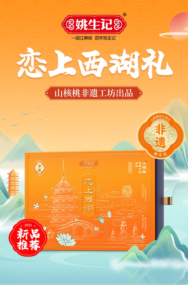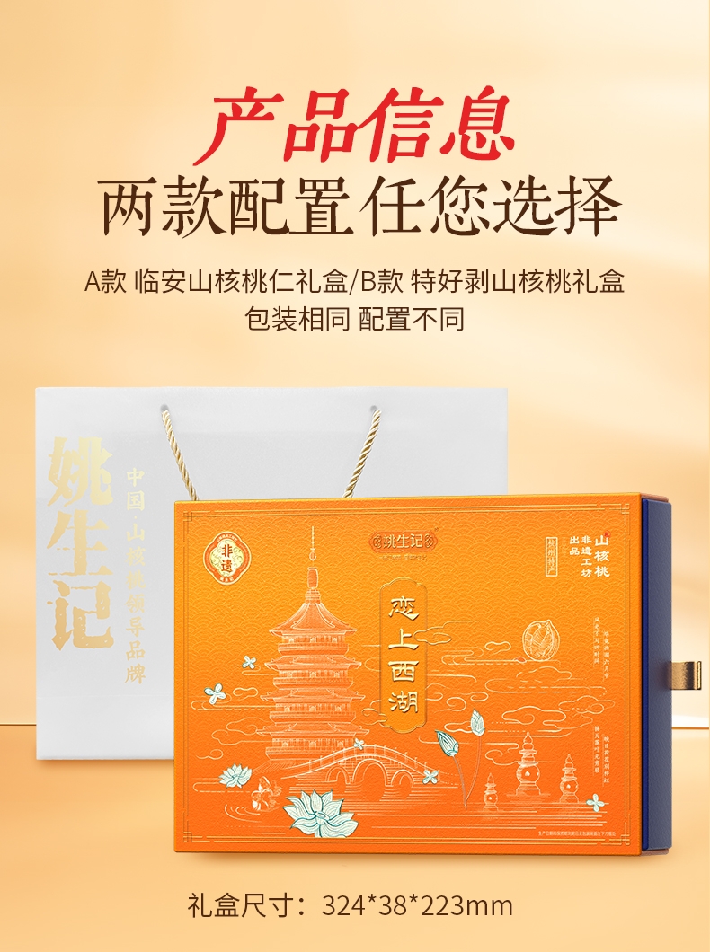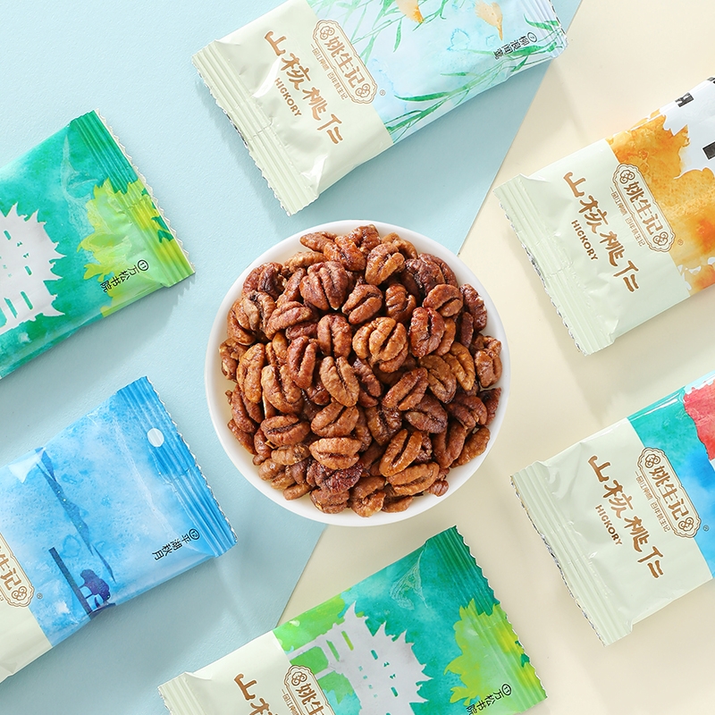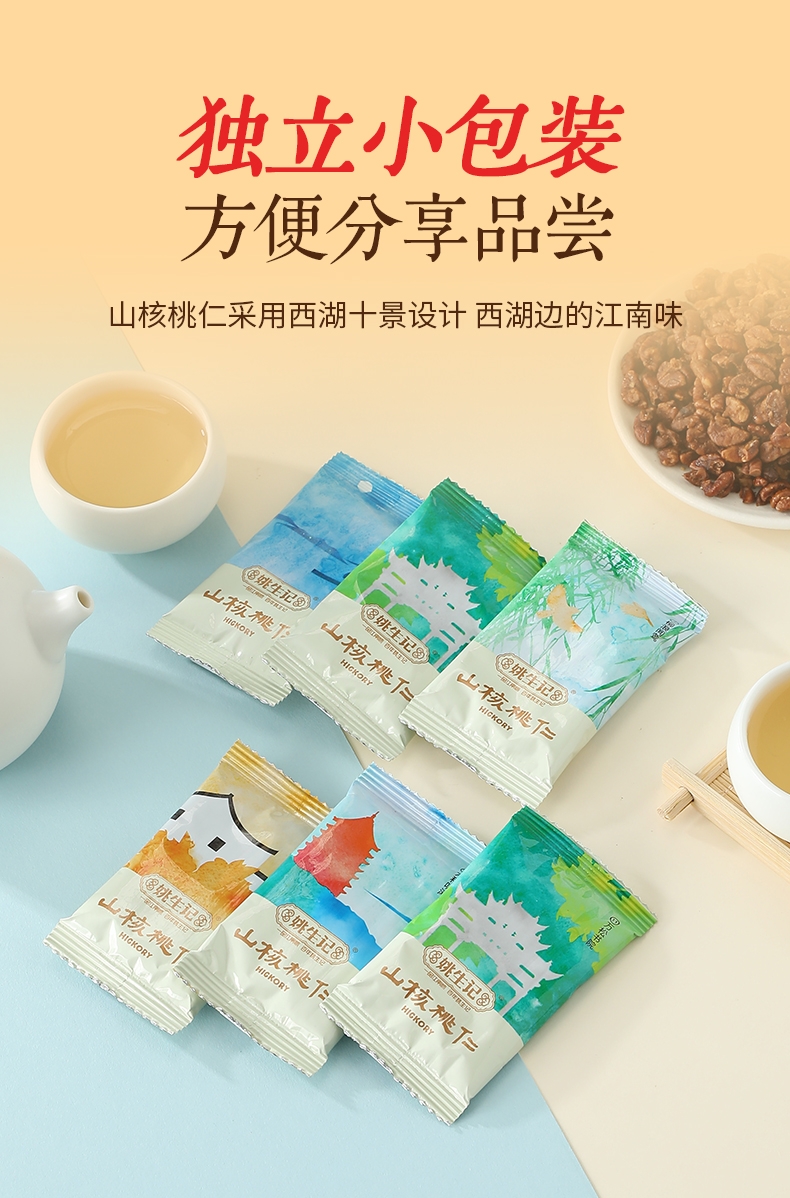 独立小包装;方便分享品尝;山核桃仁采用西湖十景设计 西湖边的江南味