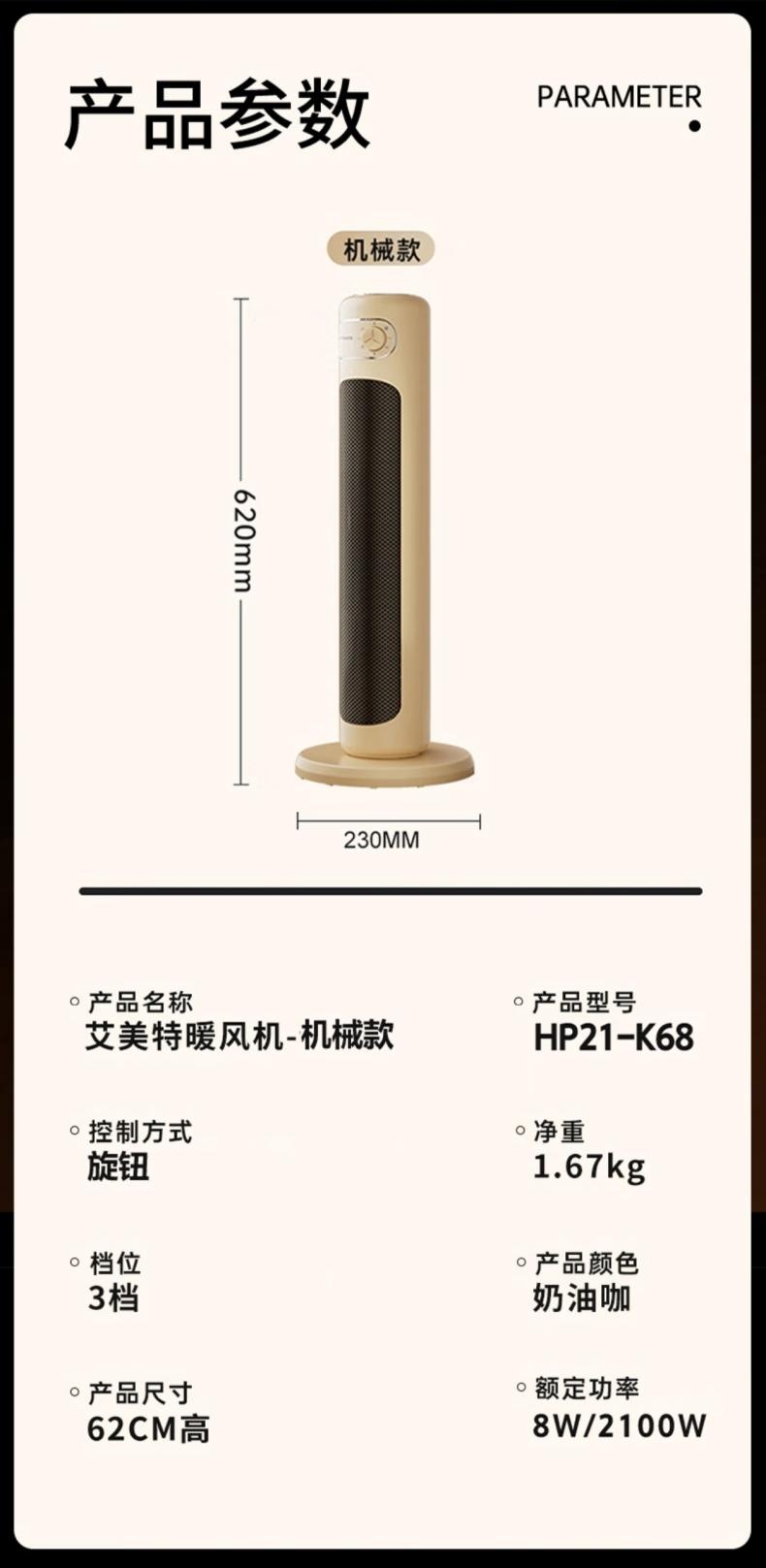 艾美特 石墨烯塔式暖风机HP21-K68