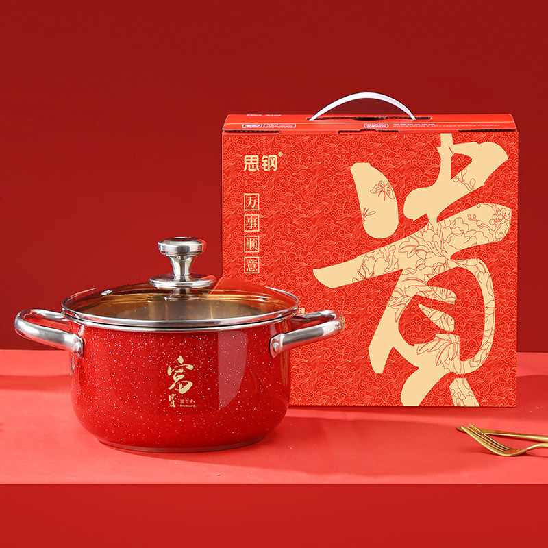 精美包装;喜庆高颜值配色;精心选择红色锅体高温烤漆,耐用不掉漆