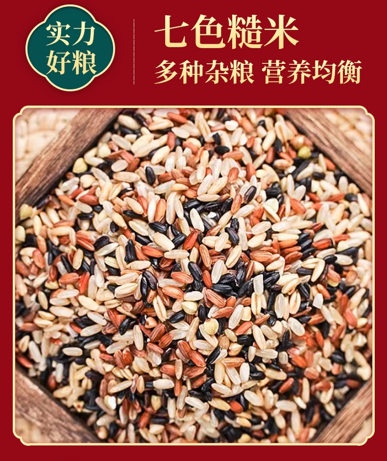 配置:小米100g*3袋+七色糙米100g*3袋+红枣50g*3袋