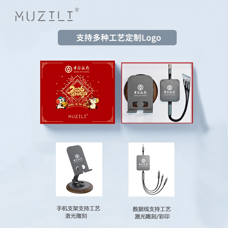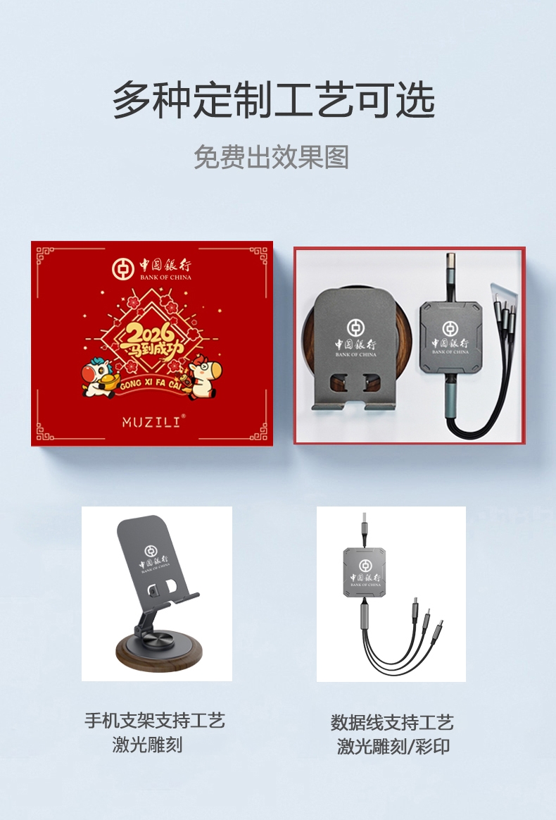 配置清单:商务款手机平板桌面旋转支架*1、66W超级快充一拖三伸缩数据线*1、天地盖礼盒*1、手提袋*1