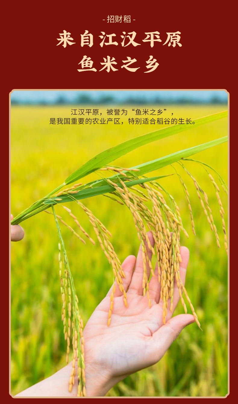 甄选大米,原产地为江汉平原,产出的大米米香扑鼻;米粒均匀,颗颗饱满,营养富硒;米饭松软可口,余有回甘