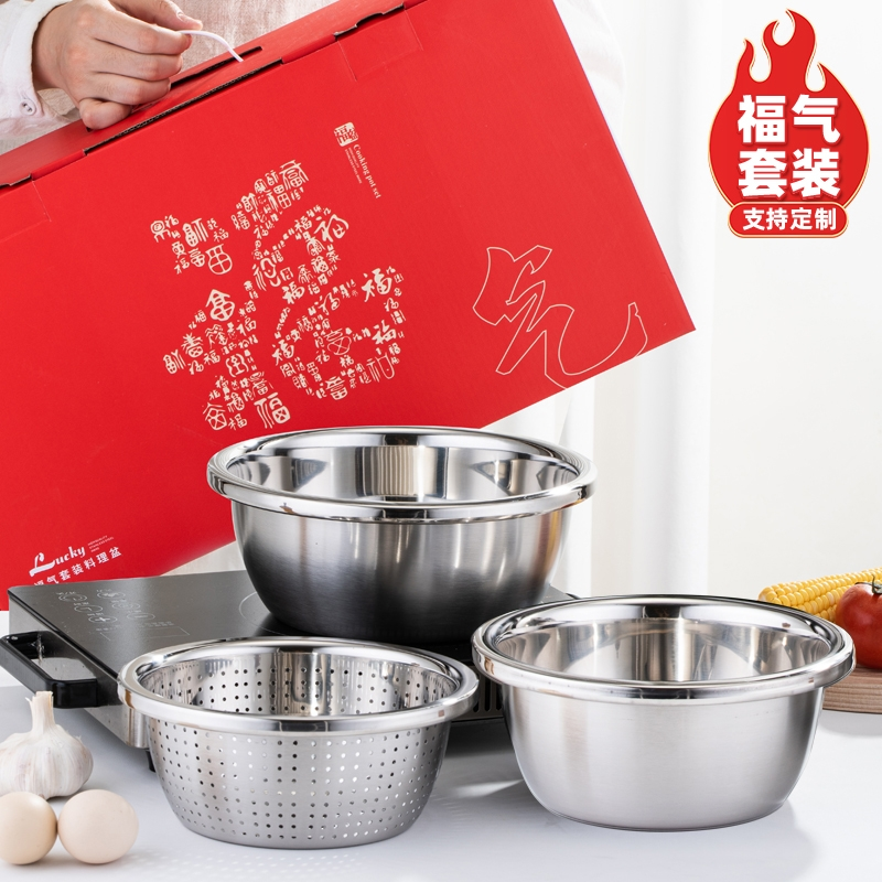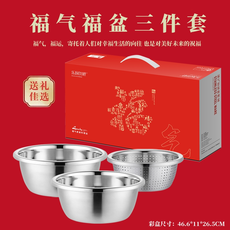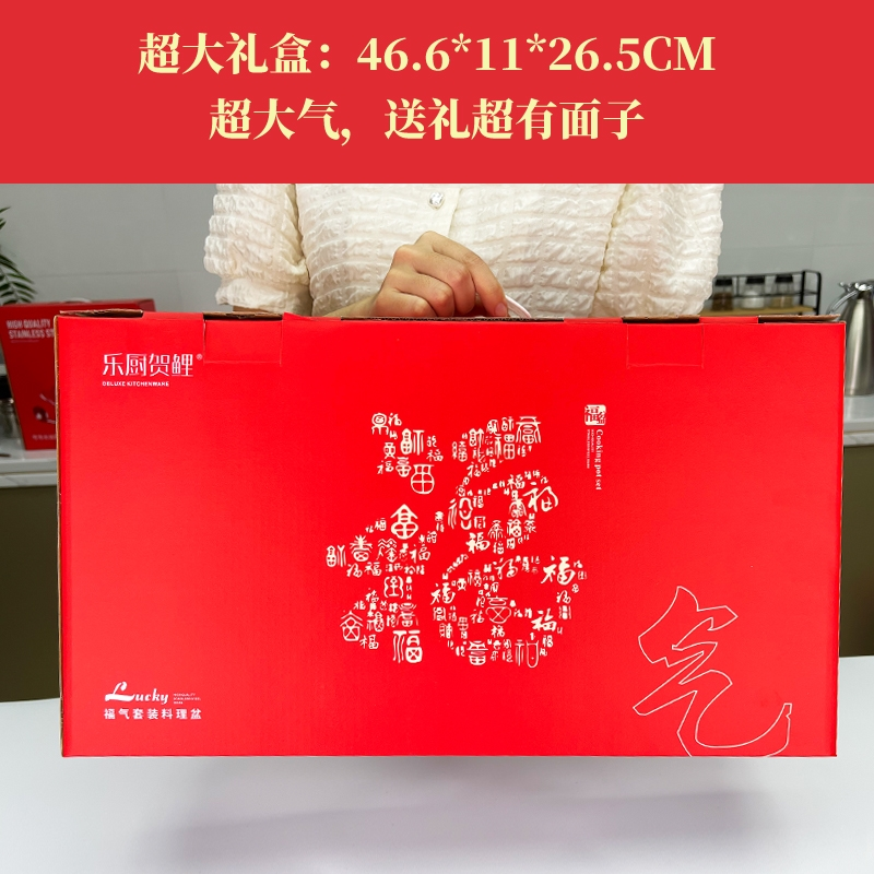 “福”即幸福、福气。是中国人对祥瑞、美好、吉祥寓意;岁末无论是员工福利,活动促销等 ,都有较好寓意。; 套装料理盆,采用的也是百姓日常用得最多的料理套装