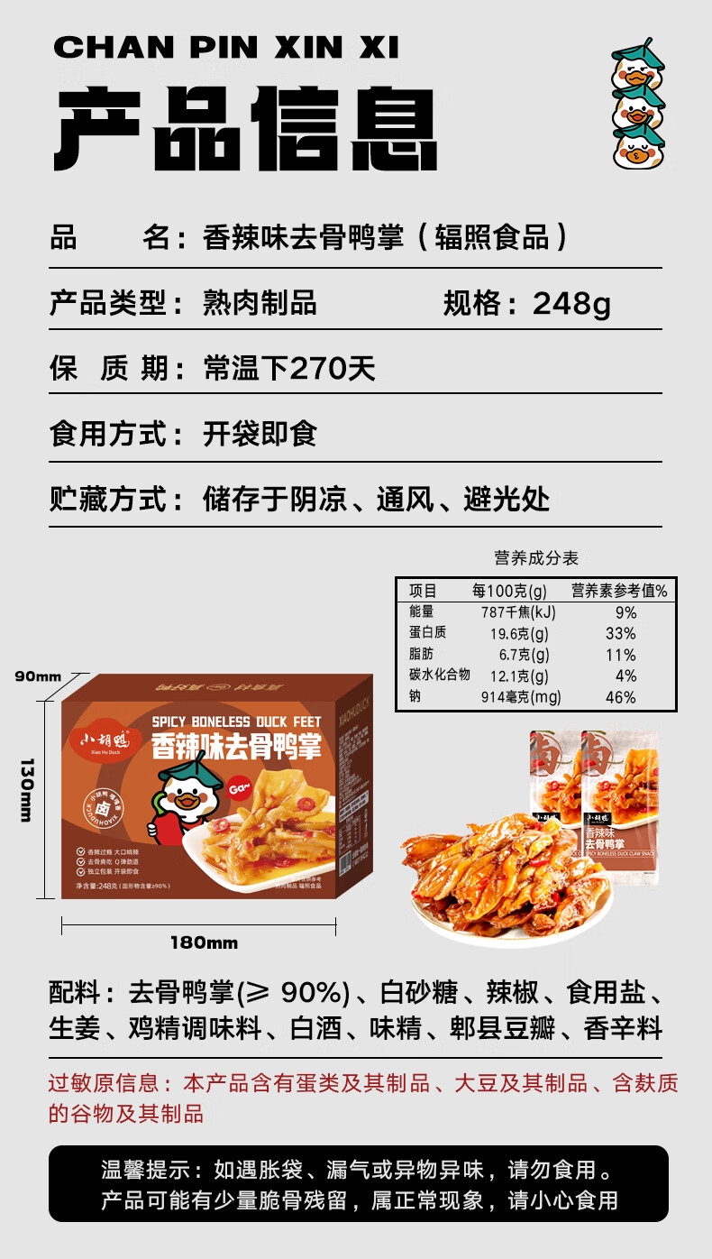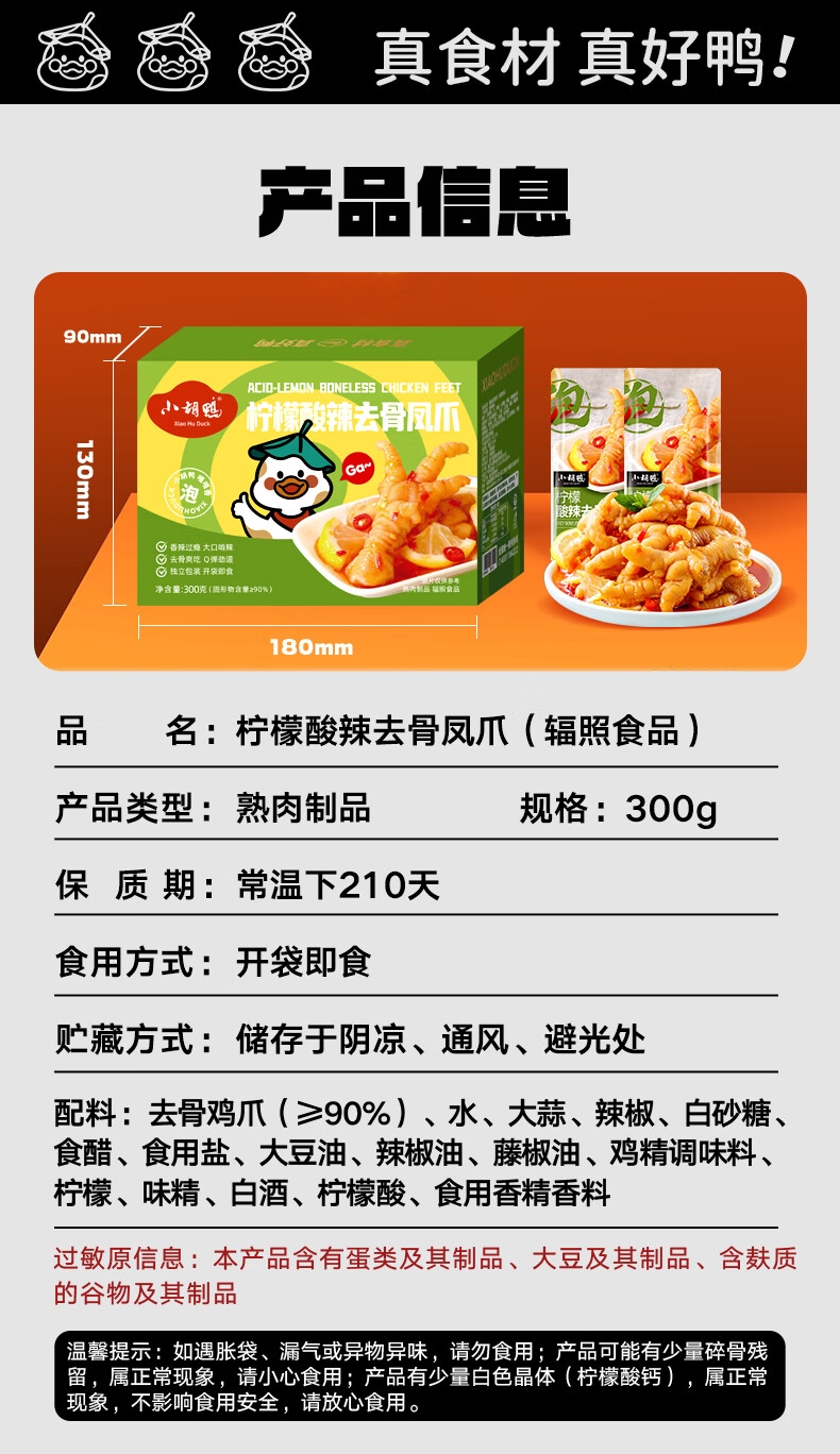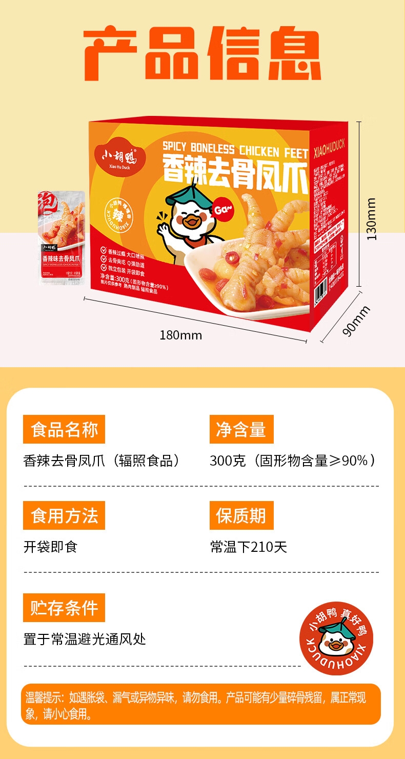 小胡鸭 盒装香辣去骨凤爪300g