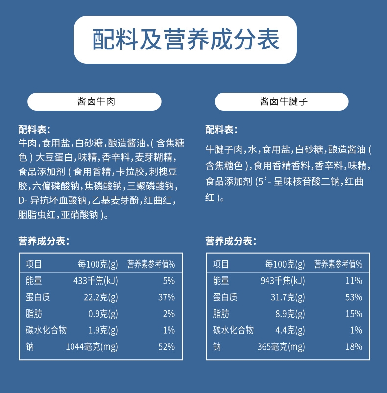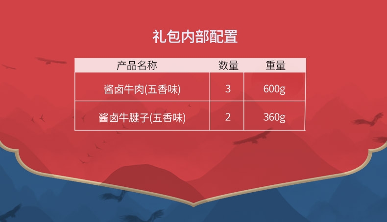 配置清单:酱卤牛腱子五香味180g*2袋 酱卤牛肉五香味200g*3袋