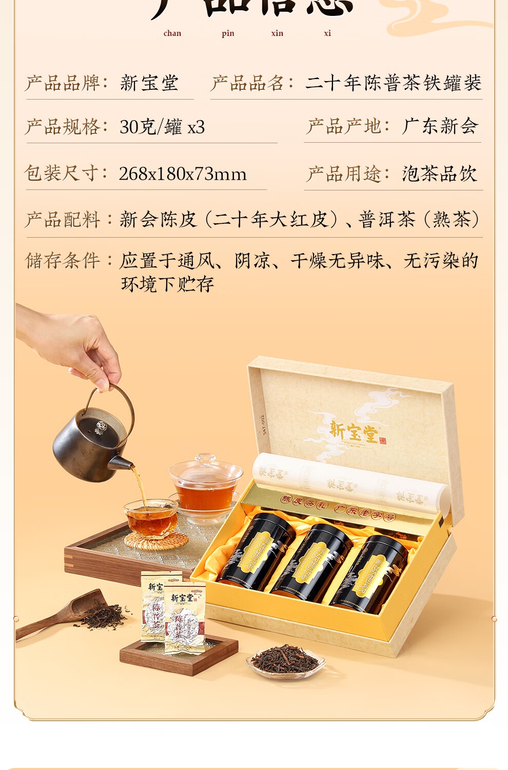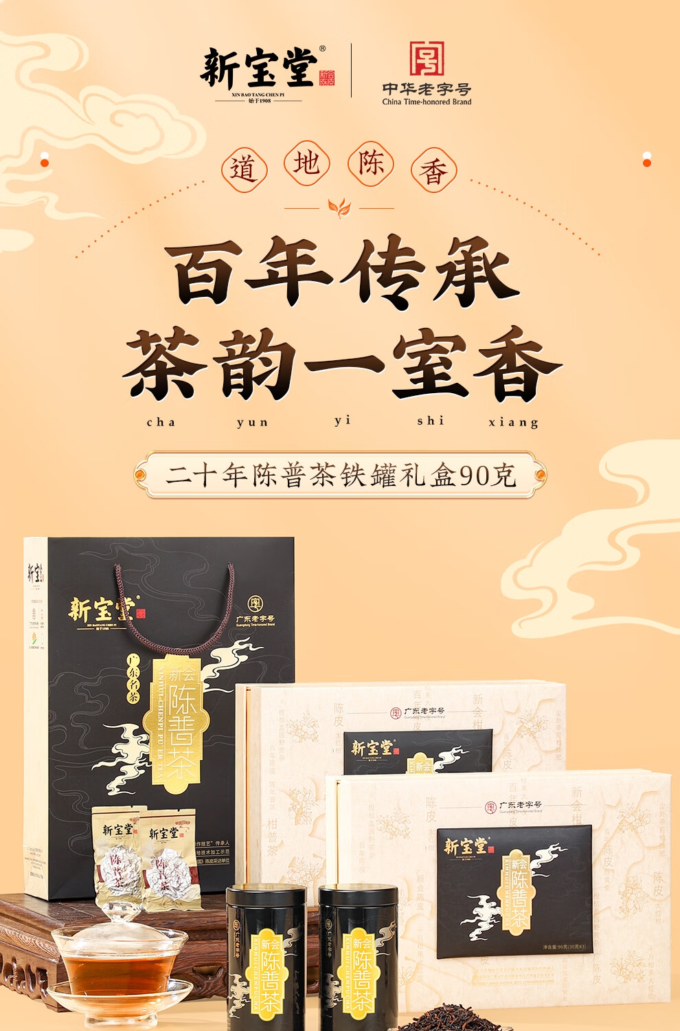 新宝堂 二十年陈普茶铁罐装礼盒90g