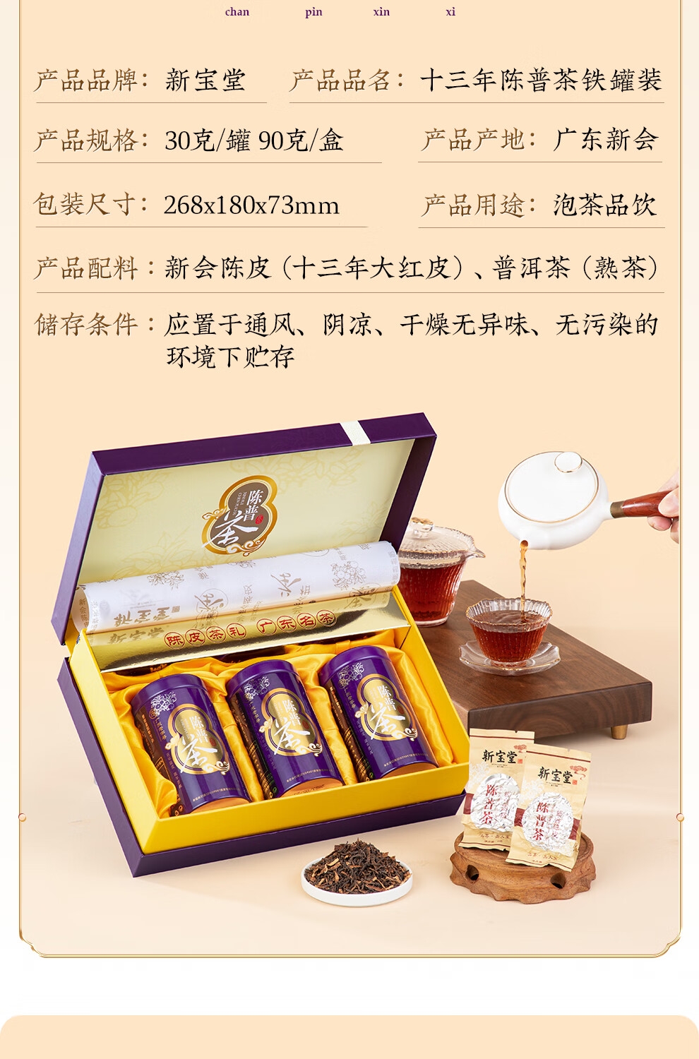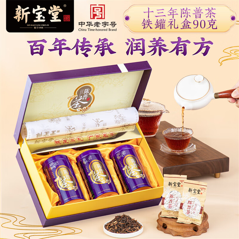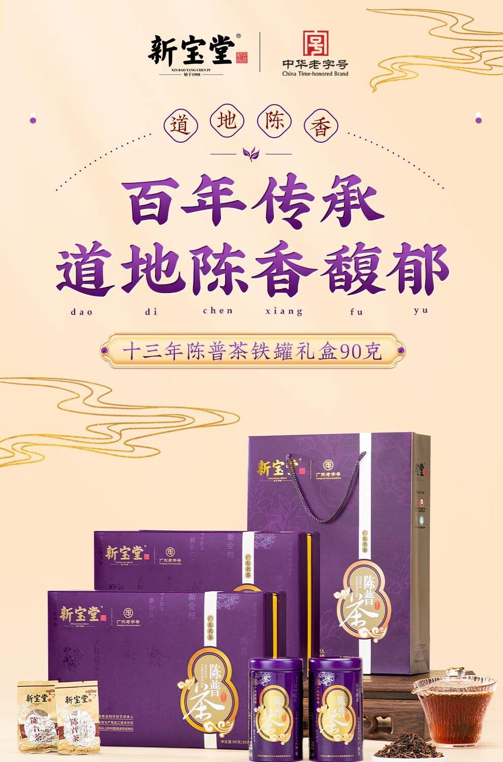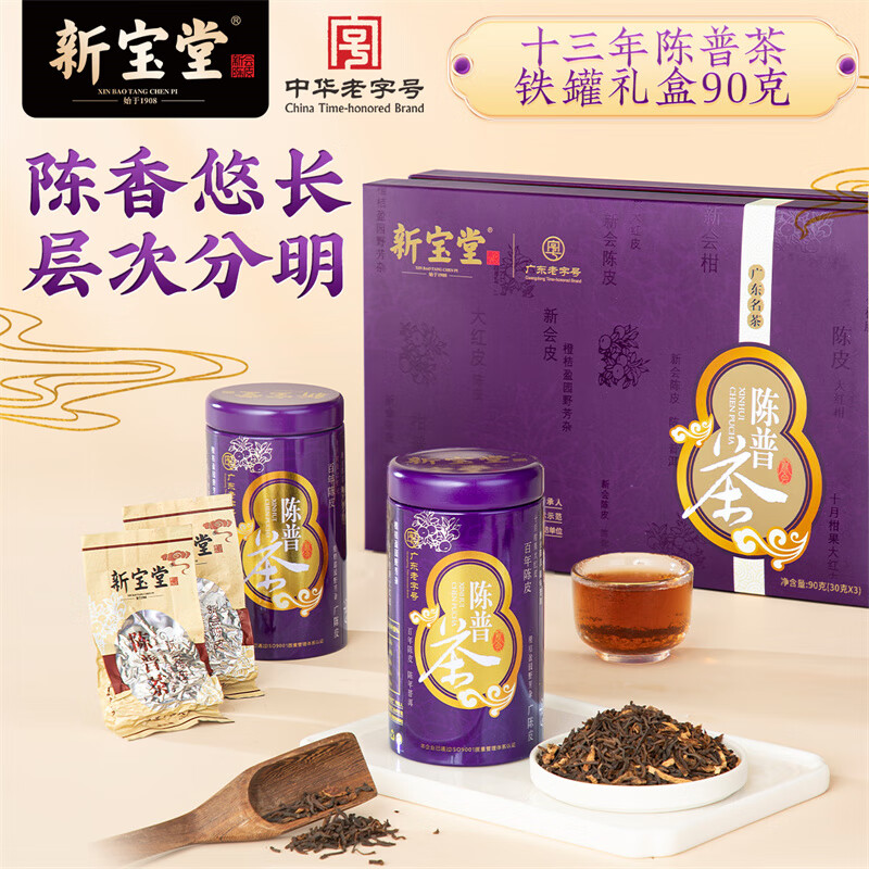 新宝堂 十三年陈普茶铁罐装礼盒90g
