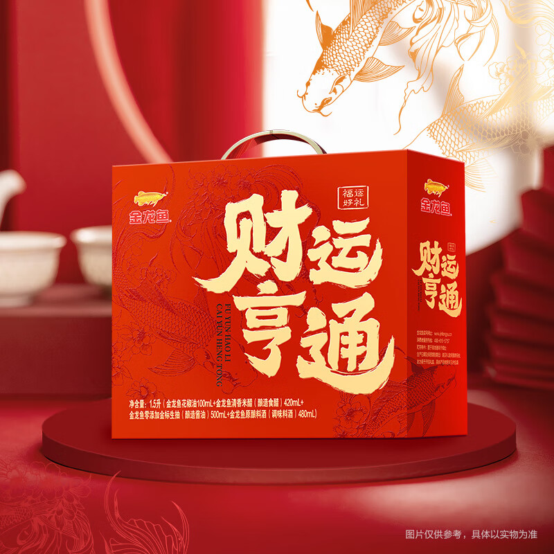 配置:金龙鱼零添加金标生抽 500ml 金龙鱼原酿料酒480ml 金龙鱼花椒油100Ml 金龙鱼清香米醋420ml