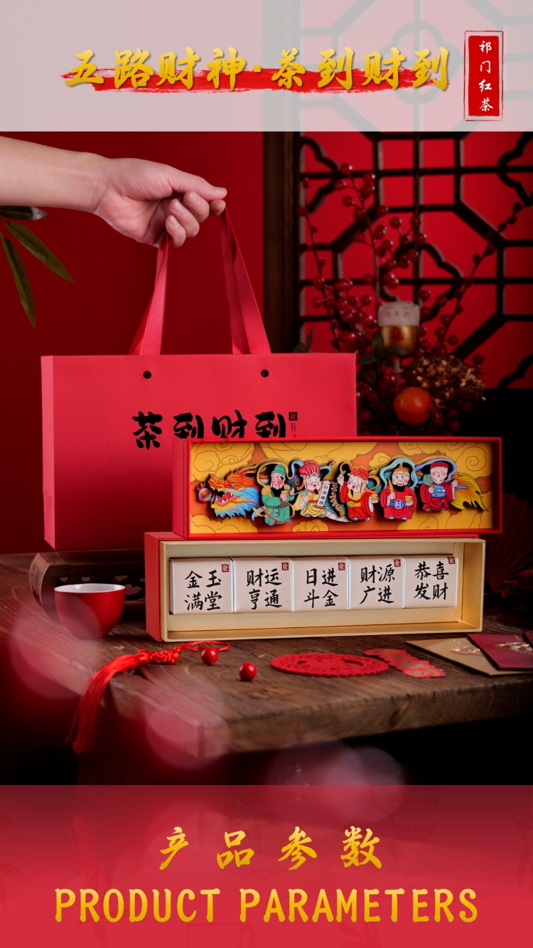 五路财神加持,国潮3D纸雕工艺,摆着好看,喝着招财;核心产区祁门红茶,非遗品质,十大名茶唯一红茶;多场景适用,开门红、日常伴手礼、活动礼等