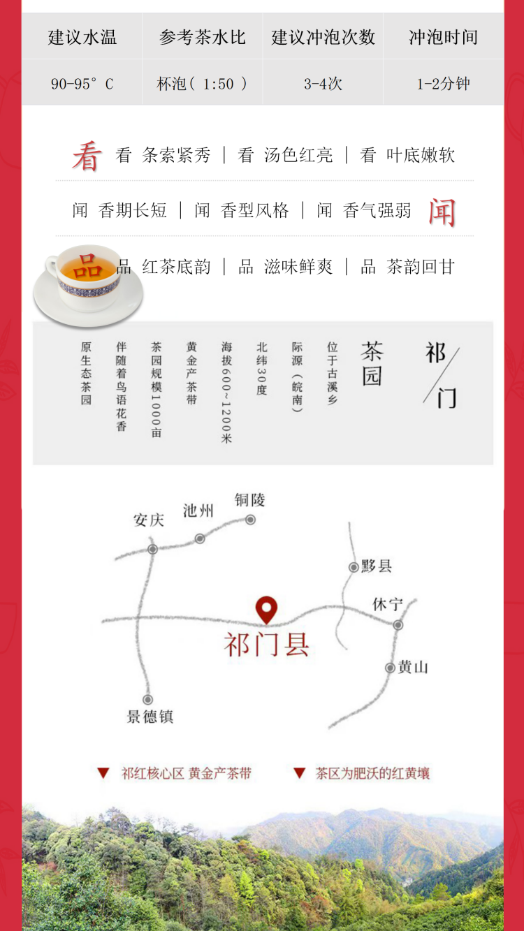 配置清单:产地:安徽·祁门 类型:红茶 等级:特级 规格:30g 建议水温:85-90°C 对联礼盒:对联*1副、红包*6个、福字贴*1张、窗花贴*2张
