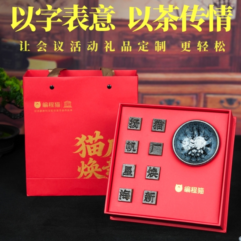 活字与茶叶的创意组合,一字一茶以字表意;高山料有趣茶,茶汤橙黄入口醇厚回甘;专属定制,让员工/客户感受到独一无二的心意