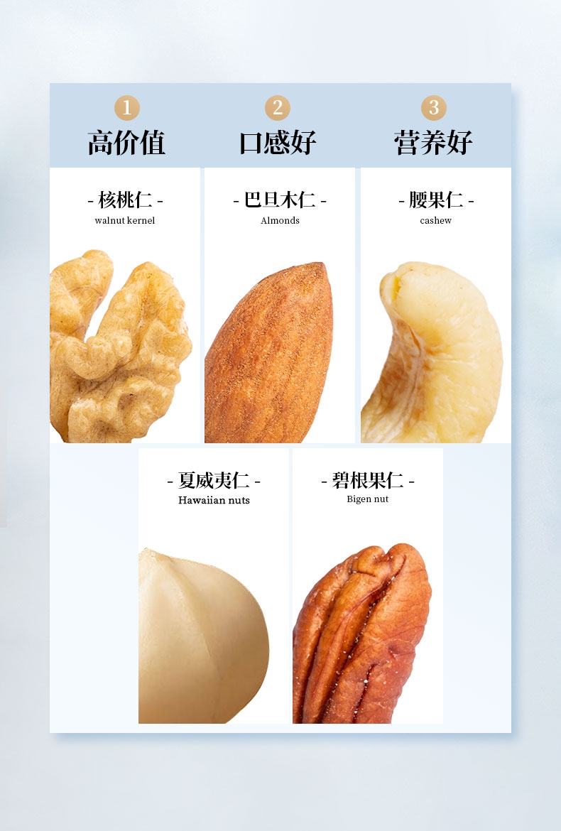 不加盐、不加糖、不含防腐剂;一罐汇集多种坚果仁;科学配比均衡美味