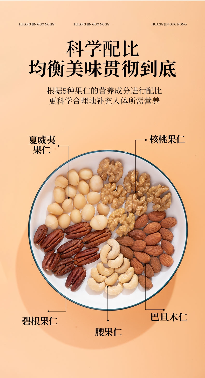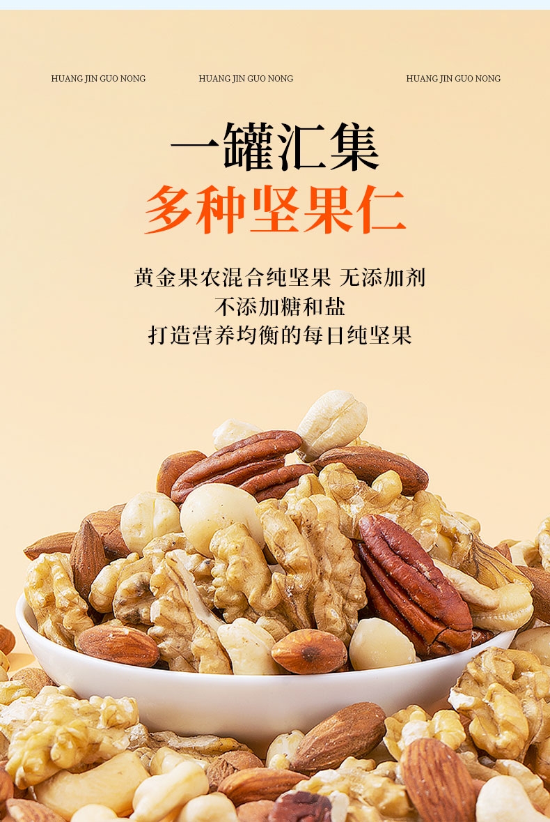 不加盐、不加糖、不含防腐剂;一罐汇集多种坚果仁;科学配比均衡美味