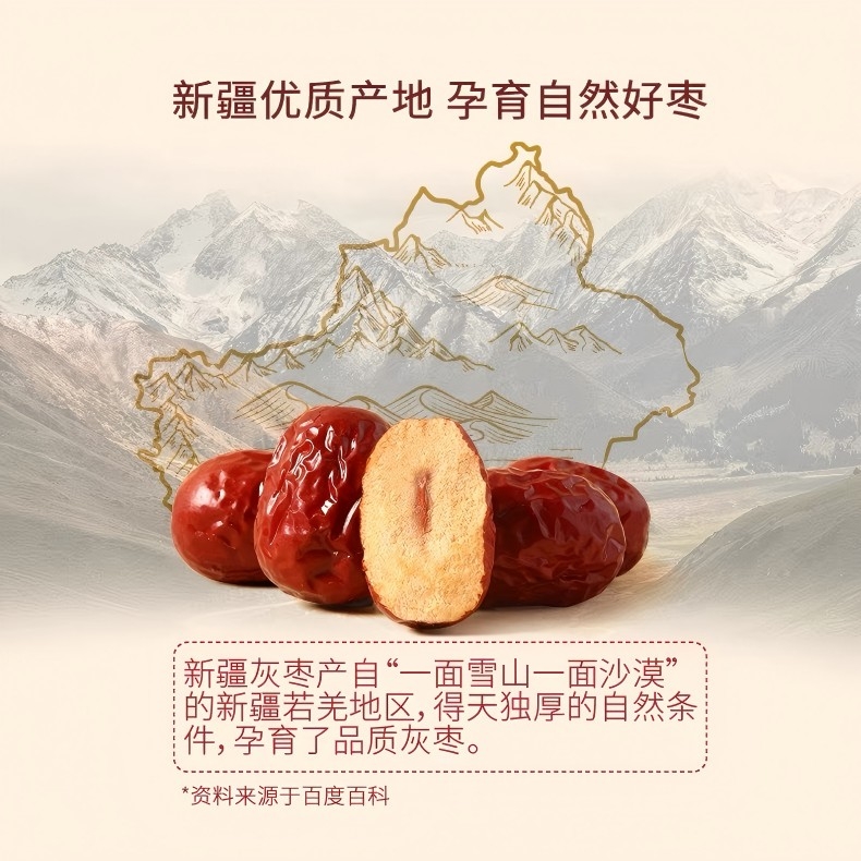 精选新疆若羌红枣;肉厚核小弹润细腻;肉质坚实
