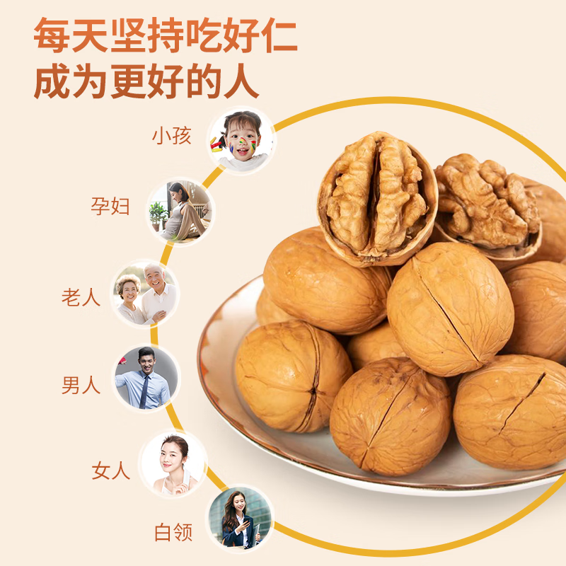 新疆185纸皮核桃,肉厚回甜不苦涩;颗粒均匀,随心搭配多种吃法;入口香甜,24小时慢烤烘焙