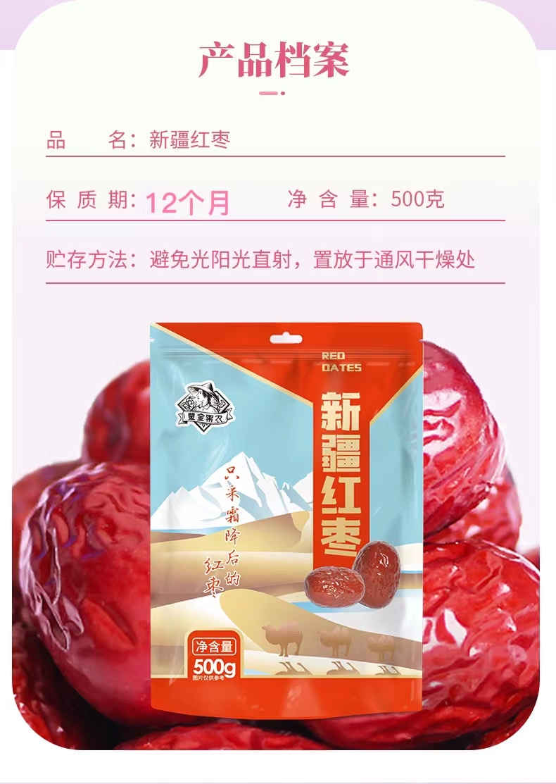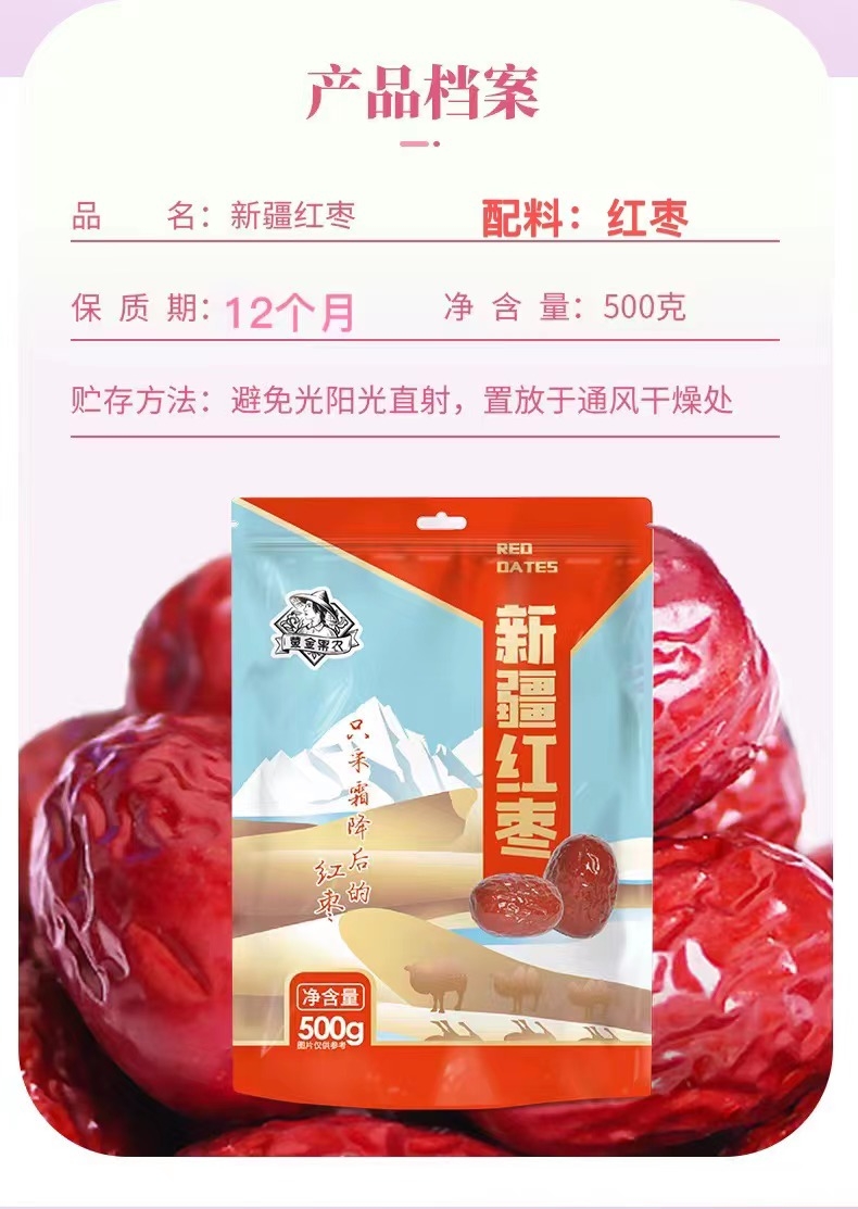 精选新疆若羌红枣;肉厚核小弹润细腻;肉质紧实