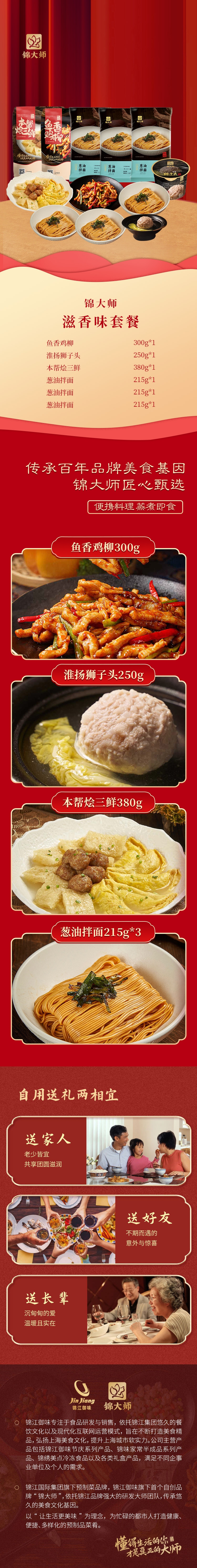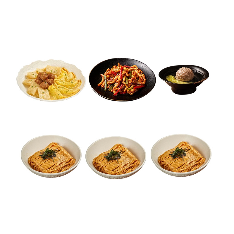 配置清单:鱼香鸡柳300g 淮扬狮子头250g 本帮烩三鲜380g 葱油拌面215g 葱油拌面215g 葱油拌面215g