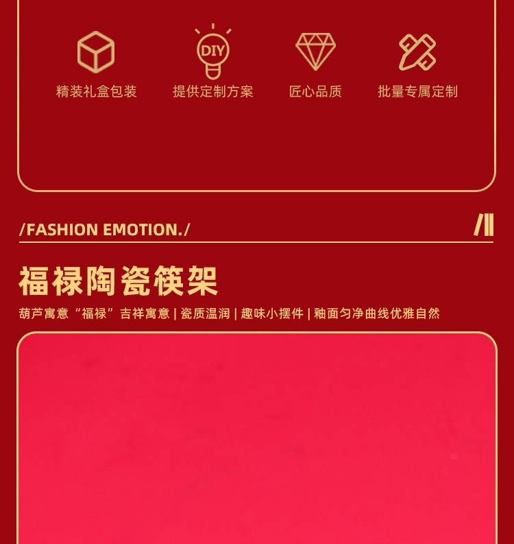 大如意精美包装可定制logo祝福不限数量;创意陶瓷葫芦主人筷架寓意吉祥;筷头可以免费私人定制
