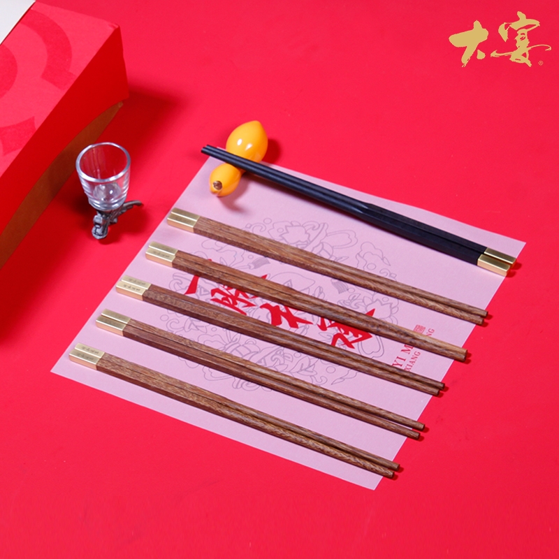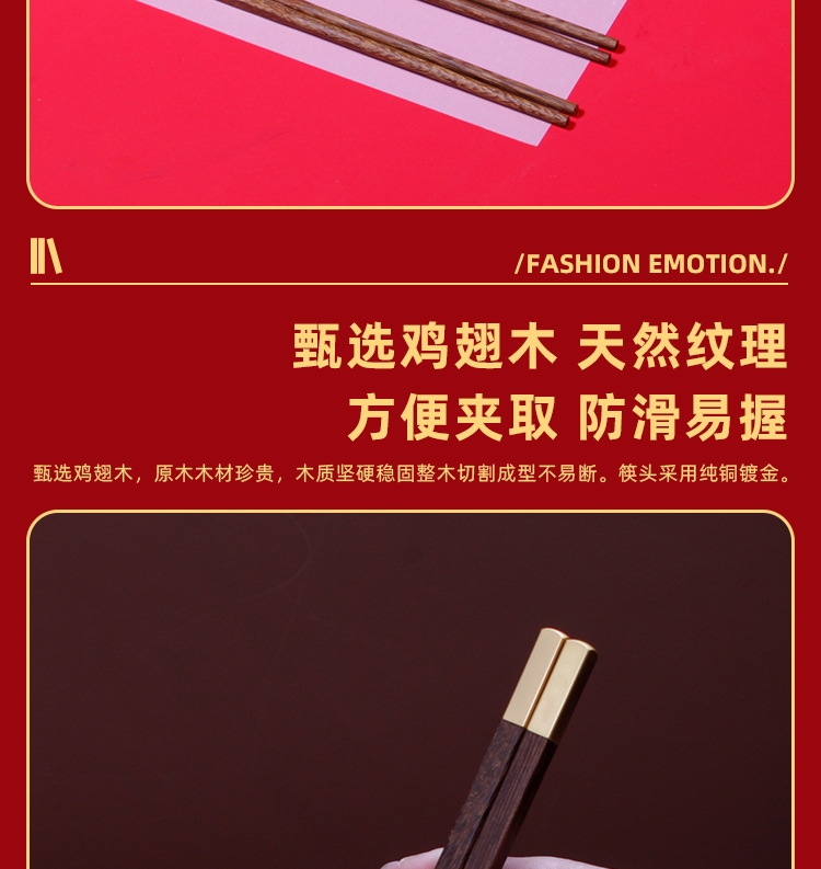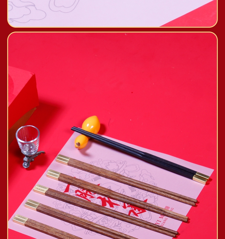材质:锌合金镀锡 鸡翅木纯铜镀金筷头 玻璃