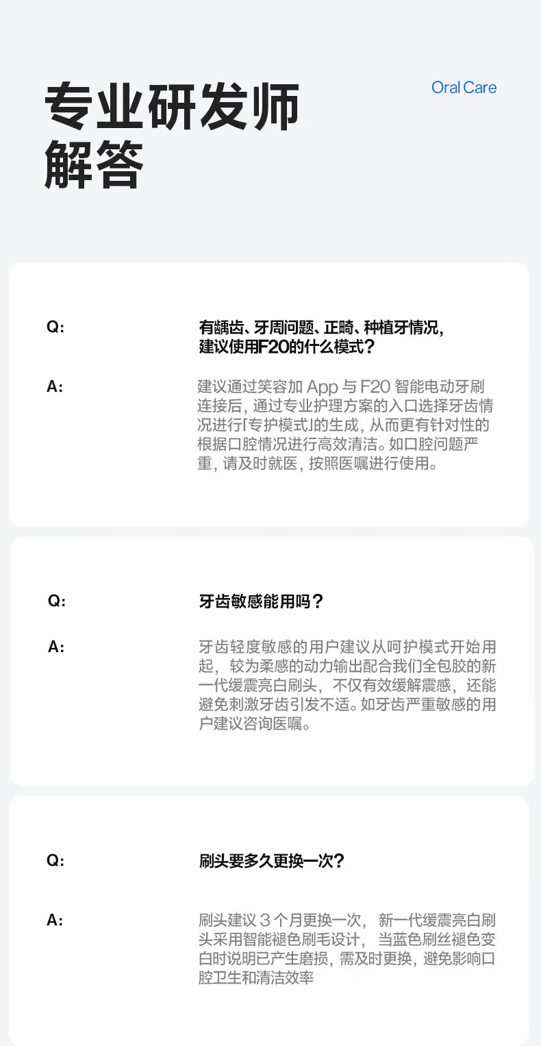 刷牙模式:清洁/呵护/亮白(录入口腔档案智能升级)