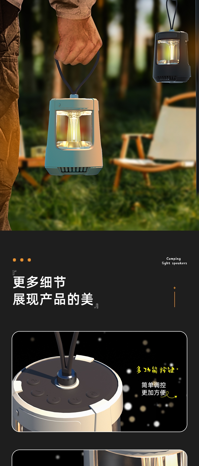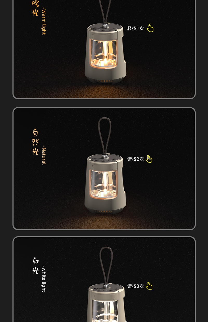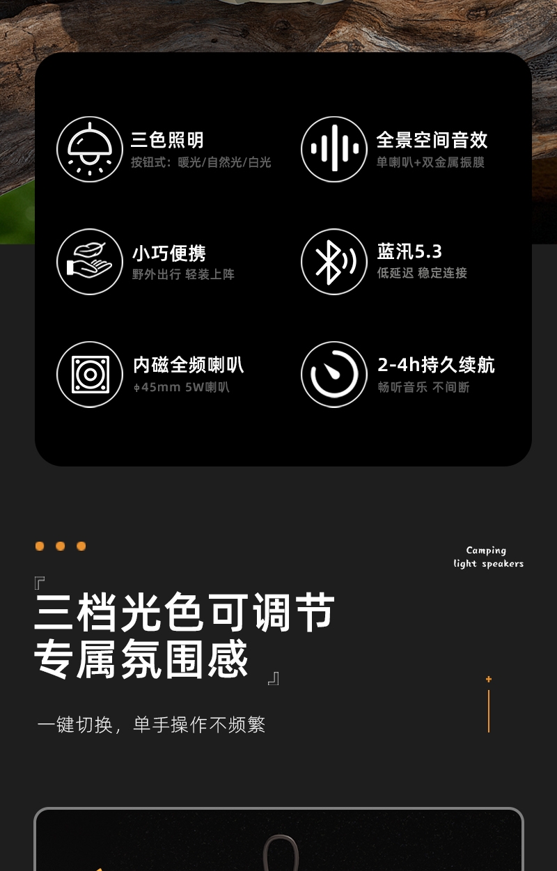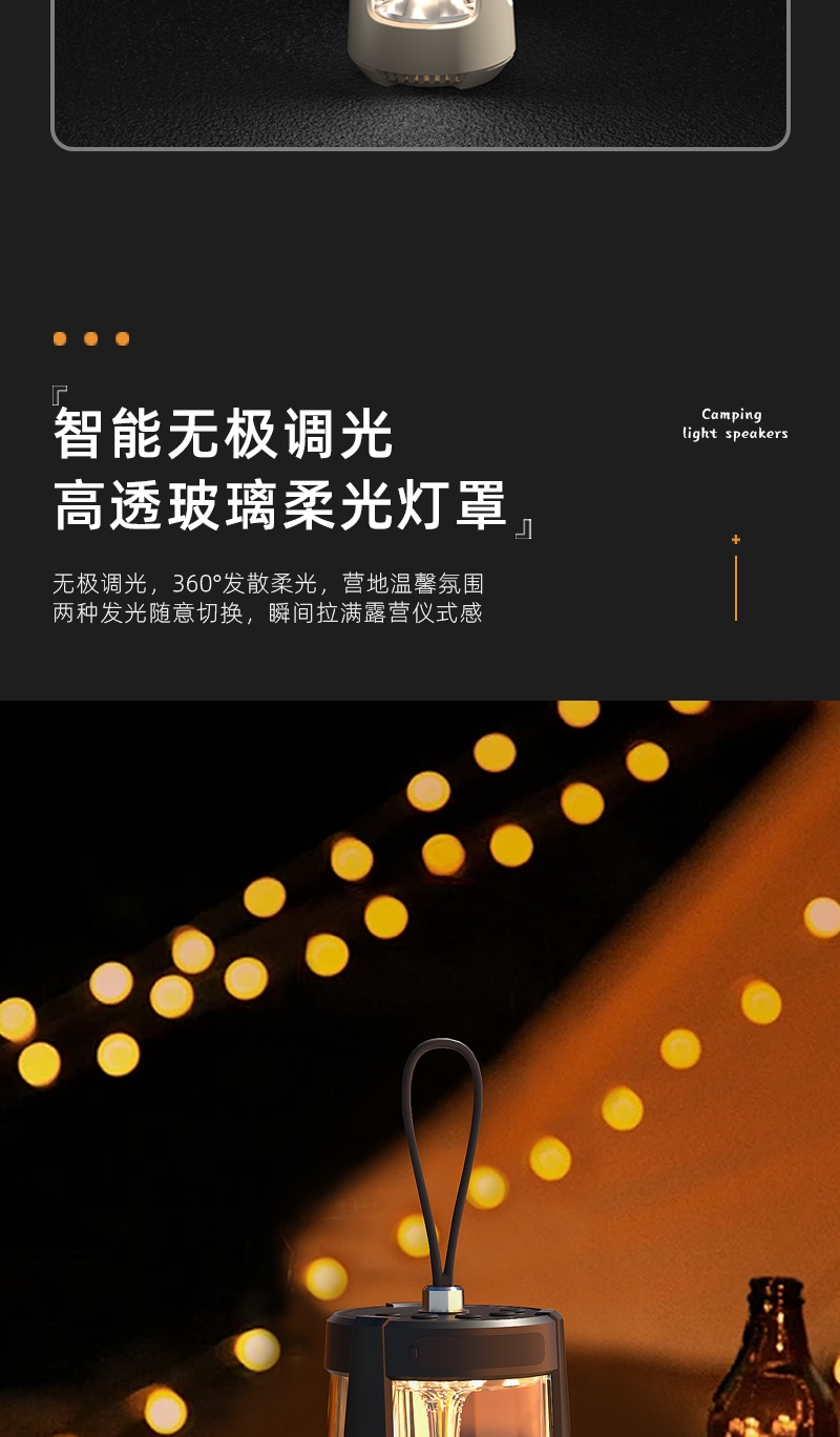 无极调节+三色照明灯光;可多设备连接,持久续航;小巧便携,方便携带