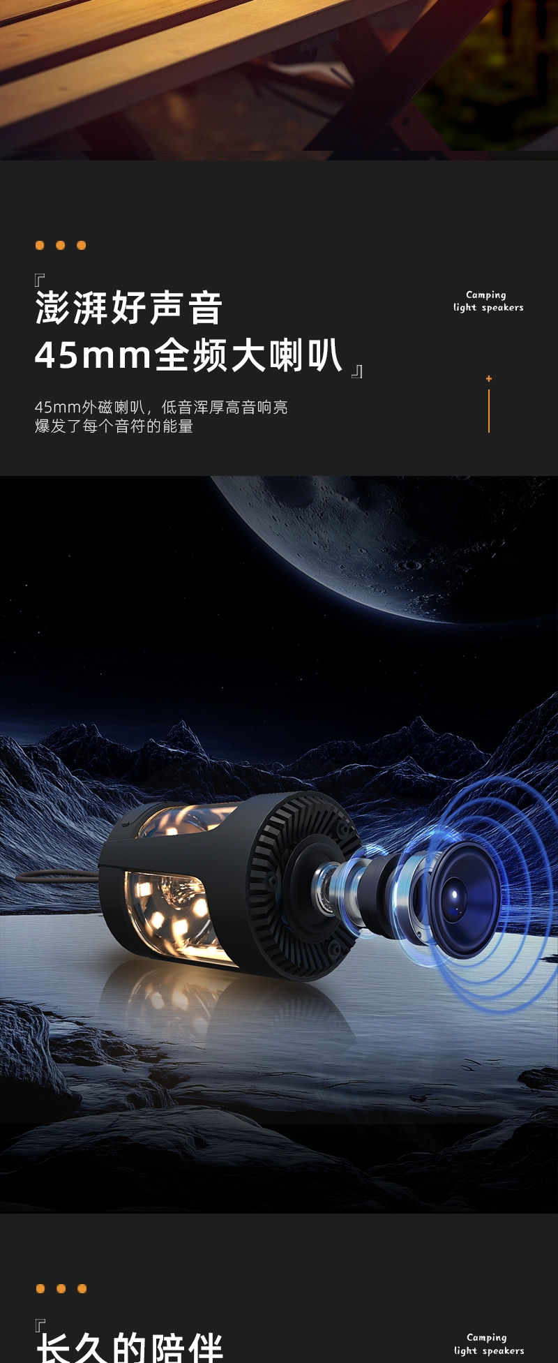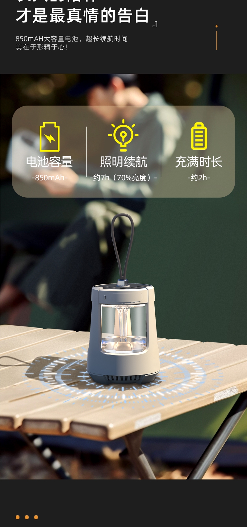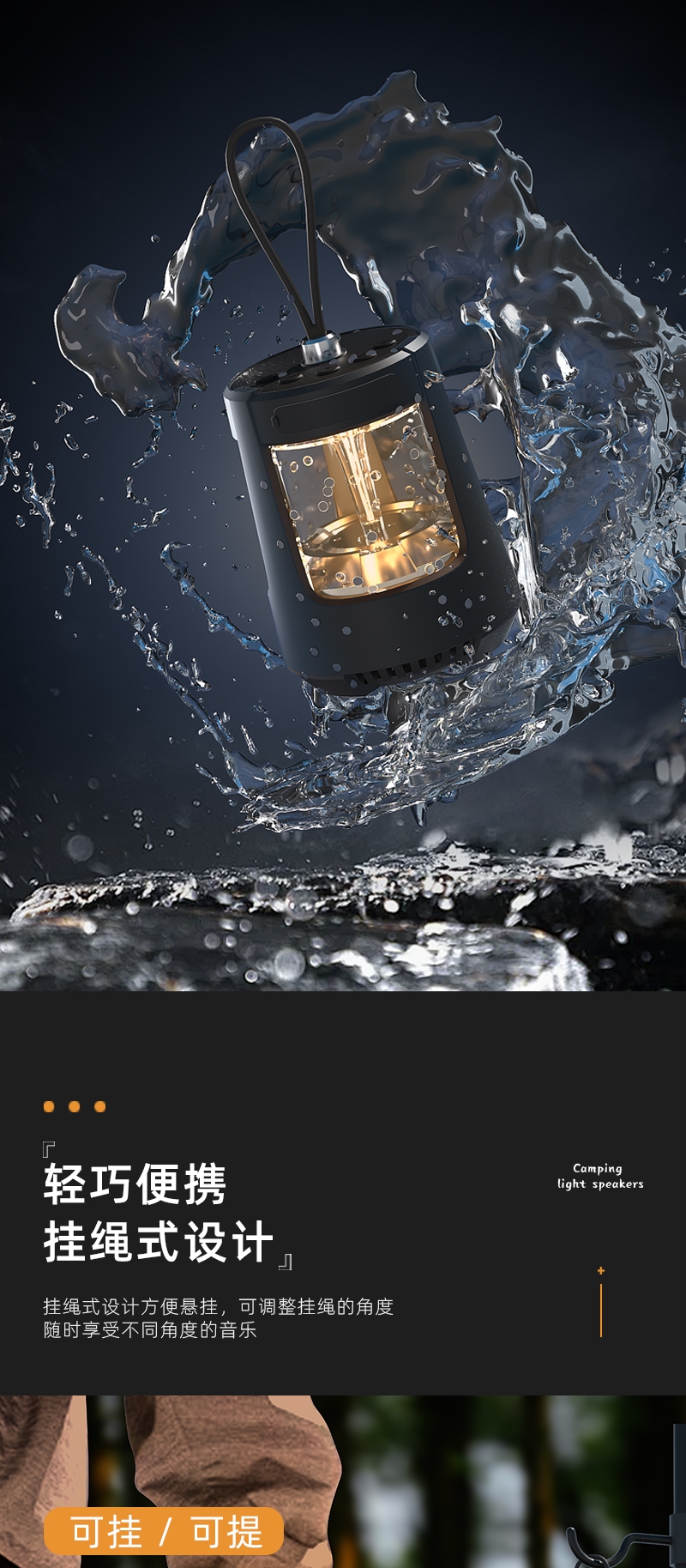 无极调节+三色照明灯光;可多设备连接,持久续航;小巧便携,方便携带