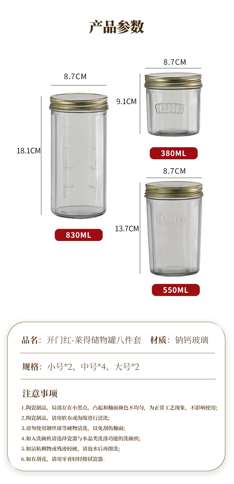 配置清单:大830ml*2、中550ml*4、小380ml*2