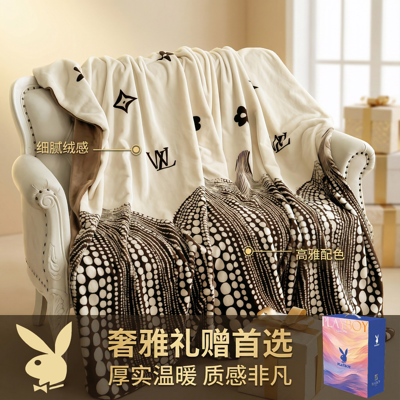 花花公子 仿羊绒双层加厚保暖午睡休闲毛毯