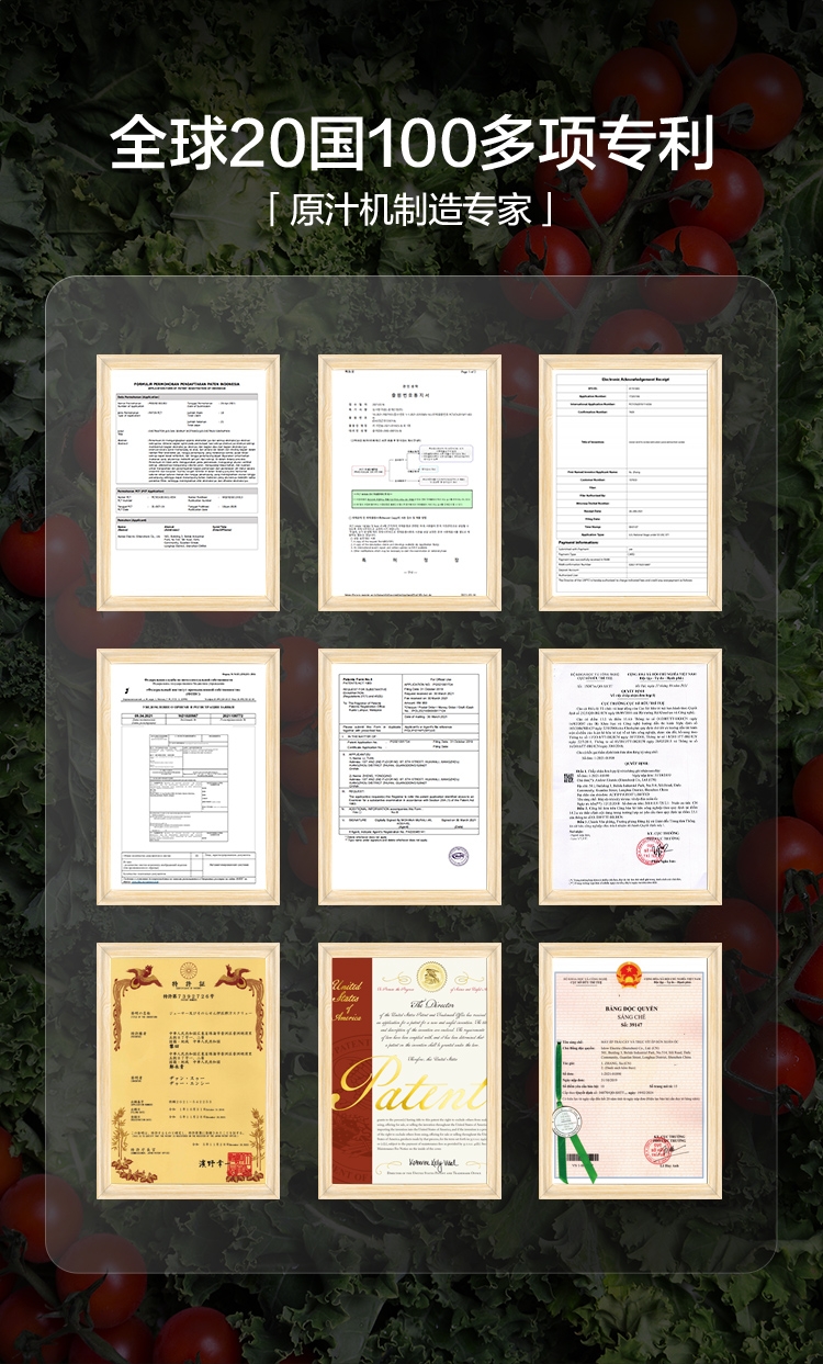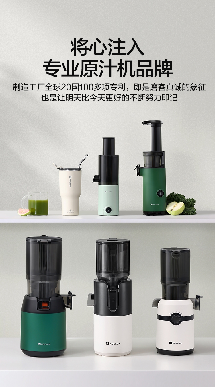新技术二次榨原汁机,出汁高,速度快,渣更干;曜铁陀螺,坚硬耐用,使用寿命更长久;120mm大口径,水果免切整果一起榨;升级齿轮箱,扭力150牛米,压榨更彻底