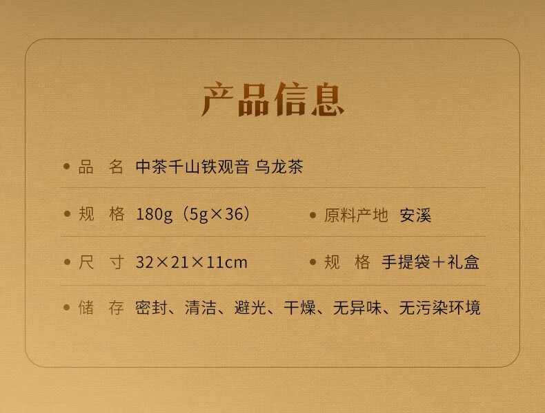 发票名称:*茶*中茶千山·铁观音(升级款)CTQS32303