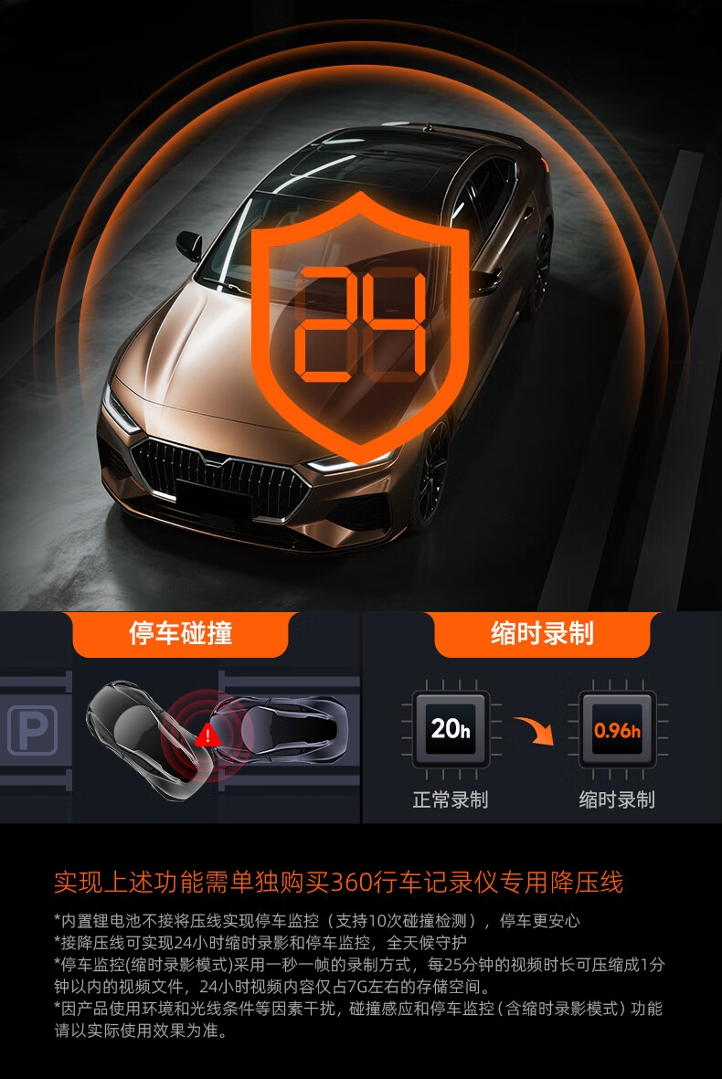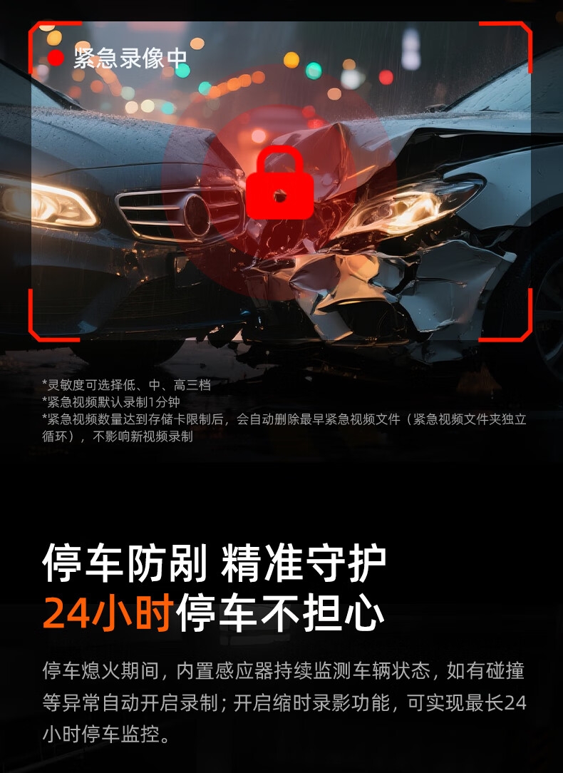 功能:夜视加强,循环录像,移动侦测,停车监控,夜视补光,前车起步提醒