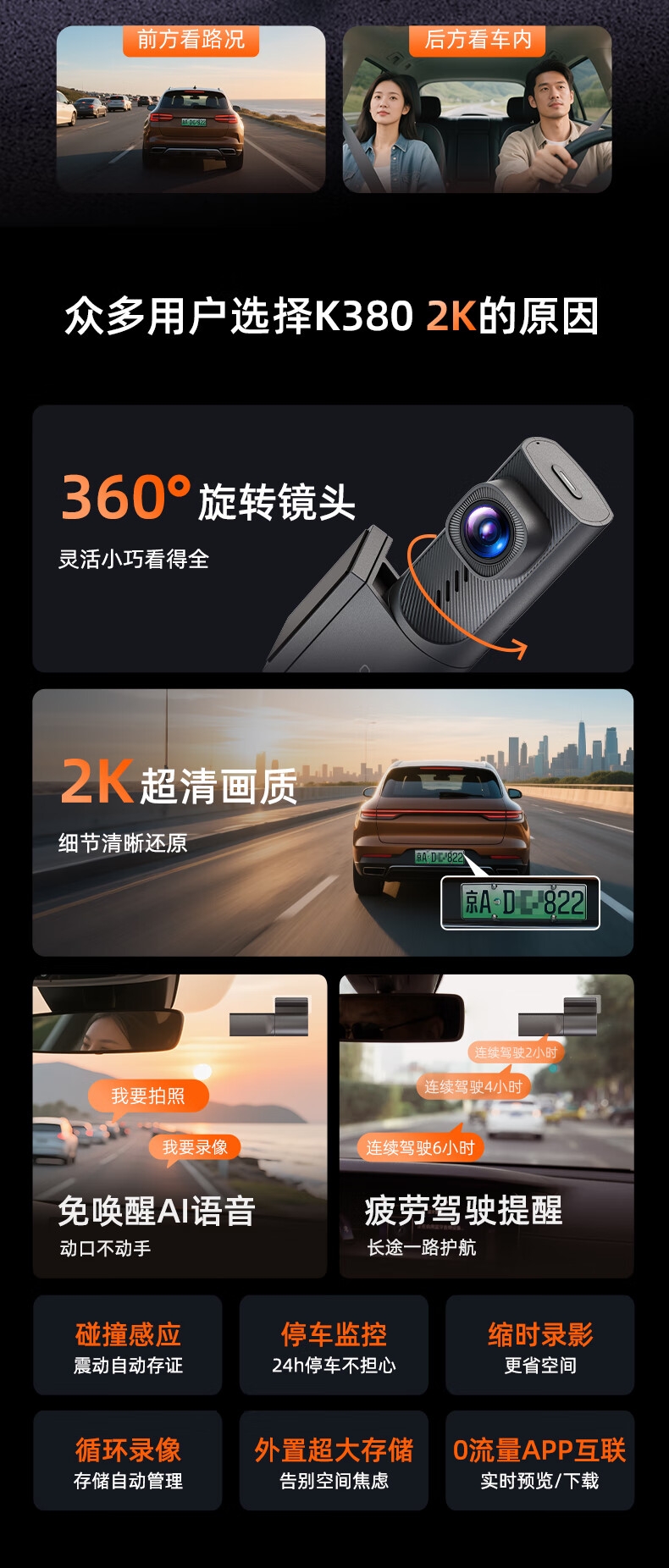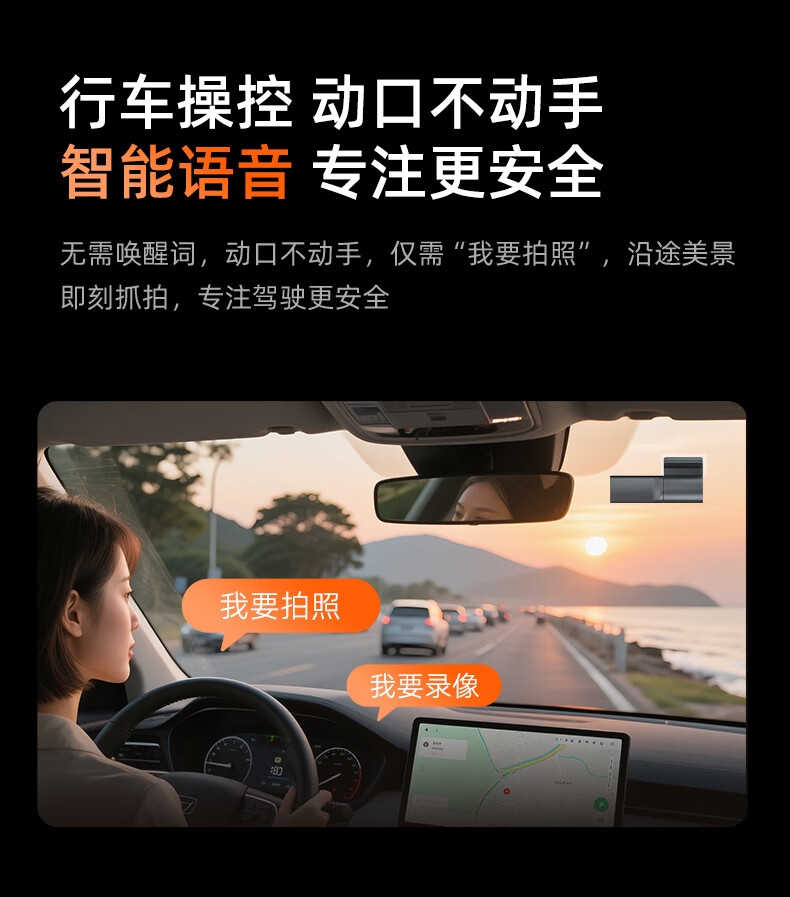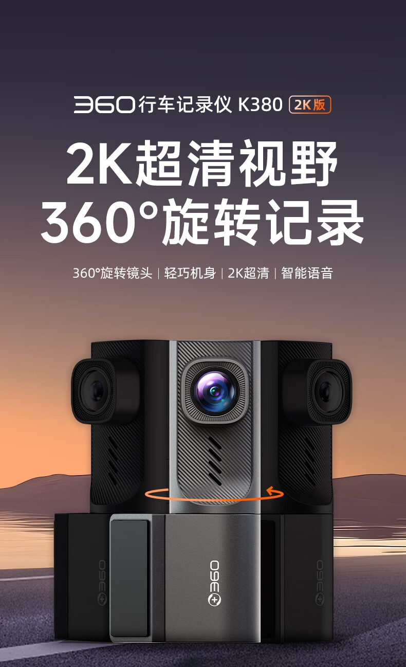 智能语音操控,可通过语音指令实现录像、拍照等操作,;手机APP连接,可实时手机观看、回看、分享、社交;360°旋转镜头 2K超清视野。