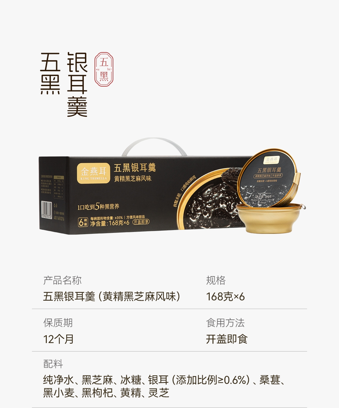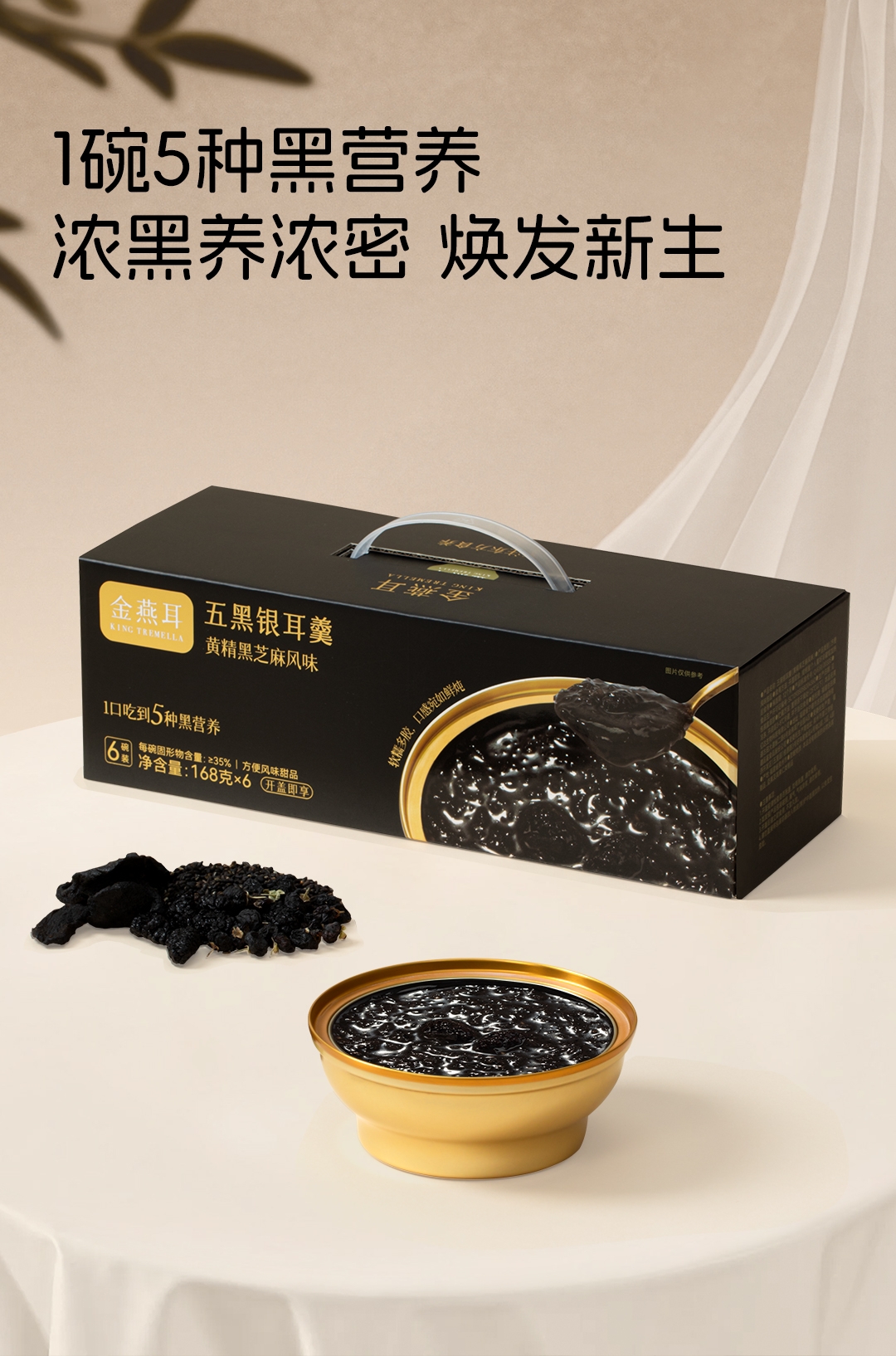 金燕耳 五黑银耳羹黄精黑芝麻168g*6婉