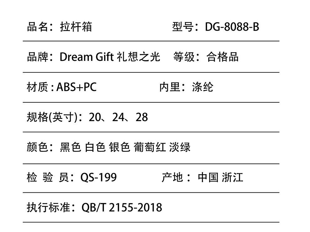 礼想之光 时尚拉杆箱旅行箱DG8088-B-20英寸